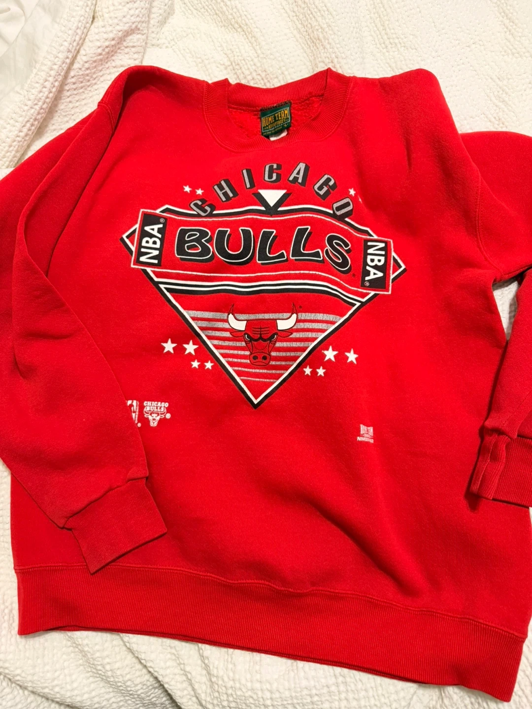 Show your team spirit with this Vintage red Chicago Bulls crewneck sweatshirt. It features the iconic Bulls logo and NBA branding. Made in the USA, it's a size large. This sweatshirt is perfect for game days or everyday wear for any Bulls fan!