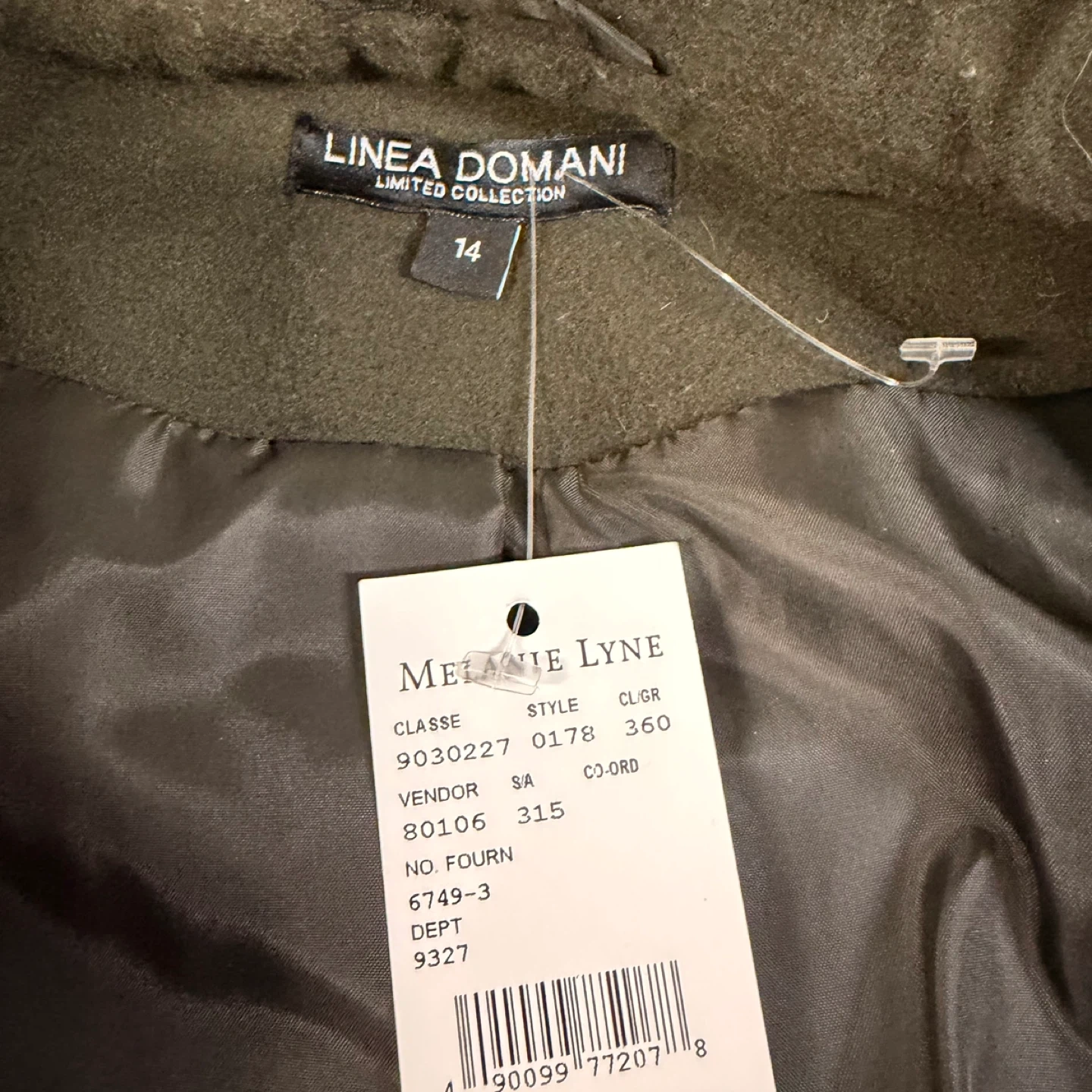 Brand New Linea Domani Olive Green Coat Size 14 w/ Tag