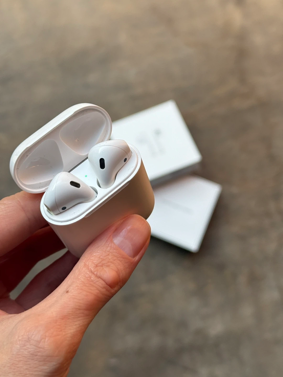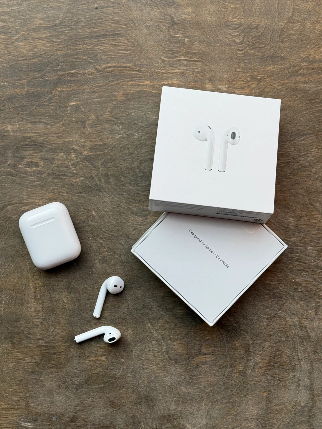 AirPods (2nd Generation) with Lightning Charging Case. Purchased in March 2024. They got water-damaged, only the right earbud works, and only for a few hours. The mic hasn’t been tested since. Comes with the original box and charging cable. Sold as is.