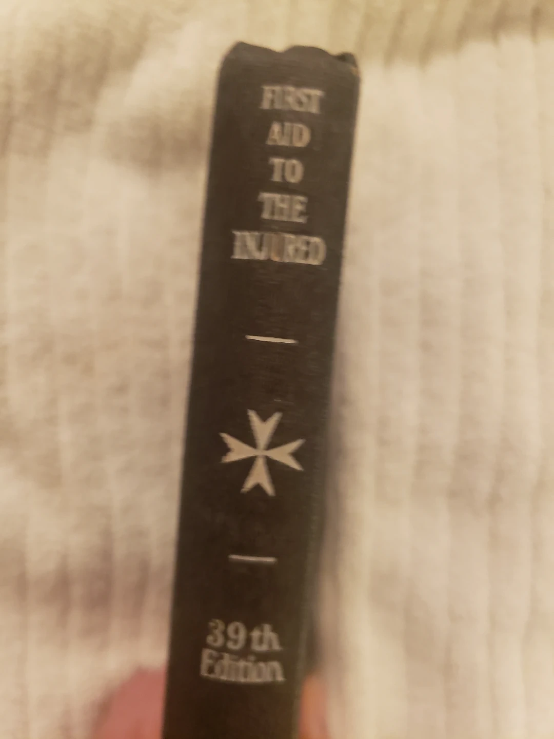 This is the 39th Edition of First Aid To The Injured. It includes detailed illustrations of bones, arteries, and treatments for injuries. It's a comprehensive guide for first aid knowledge.