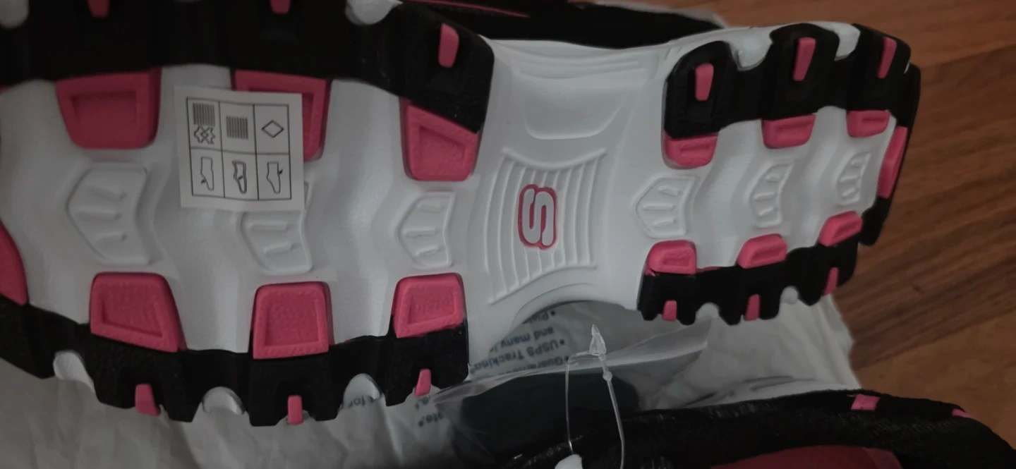 Selling a pair of brand new Skechers D'Lites sneakers! They are black with pink accents and have a white sole. Very comfortable and stylish, perfect for everyday wear 7 1/2 no box