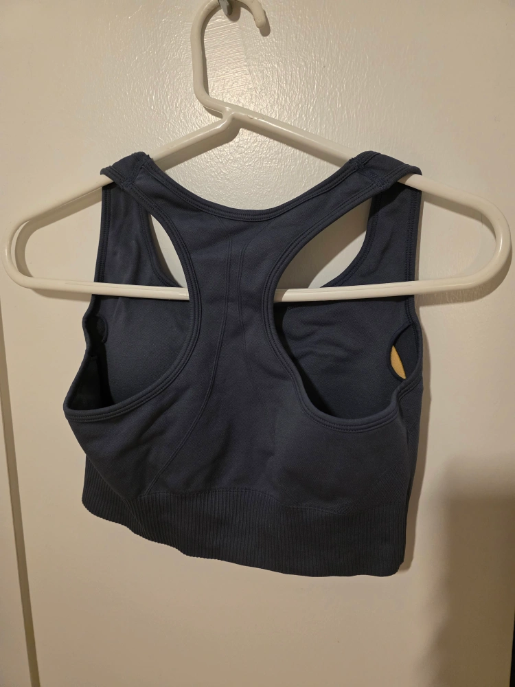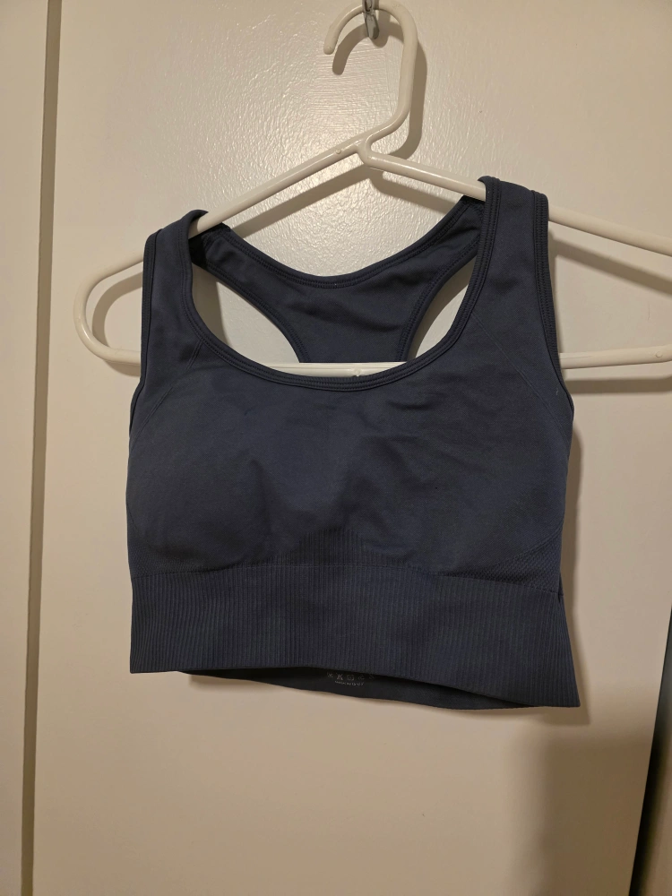 Seamless sports bra. Racerback style. Dark gray color. Great for workouts.