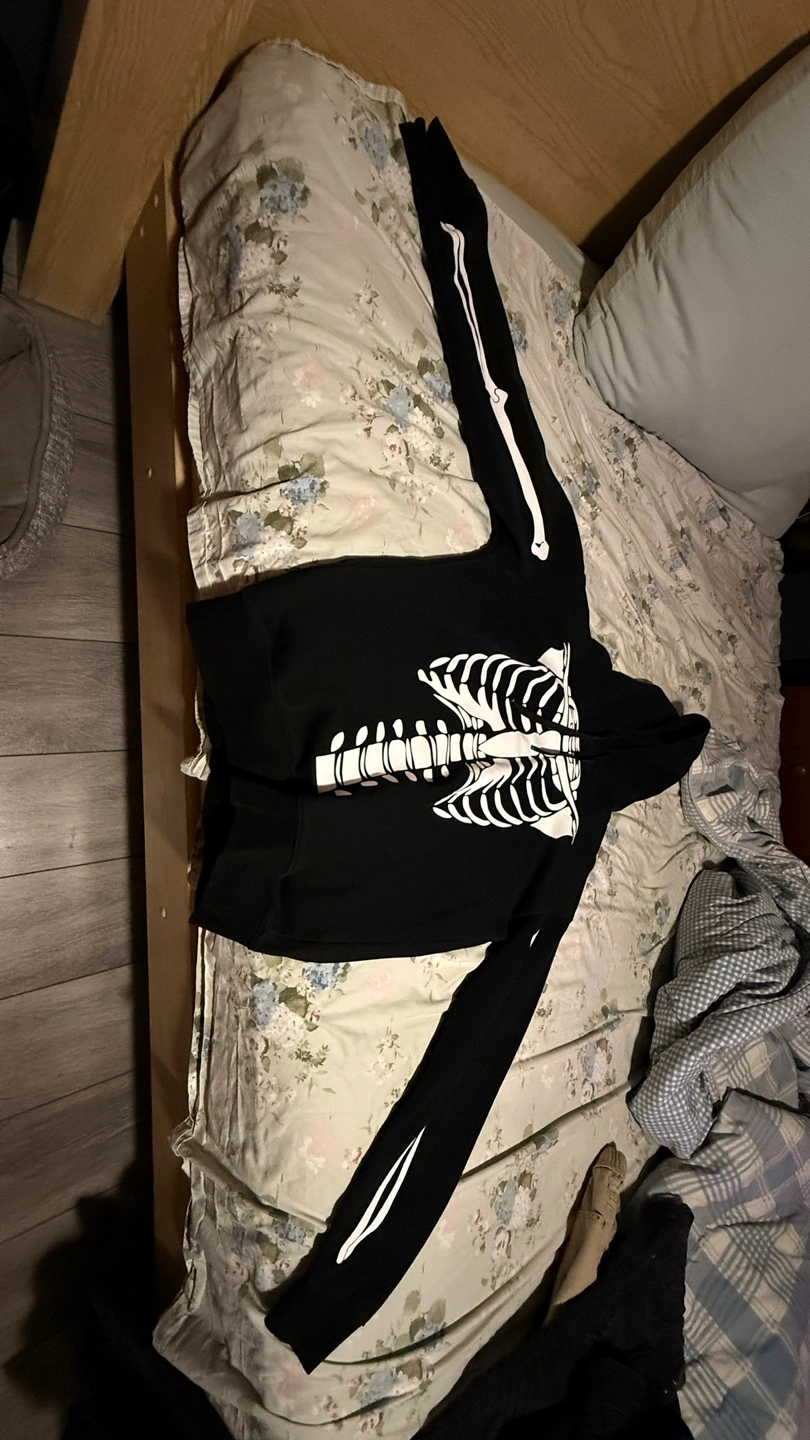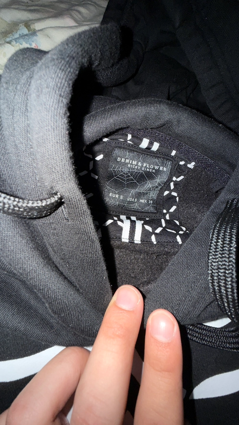 Selling a cool Denim & Flower skeleton hoodie! It's a size S and features a unique skeleton design on the front. The material is soft and comfortable, perfect for casual wear. Check out the pictures for details!