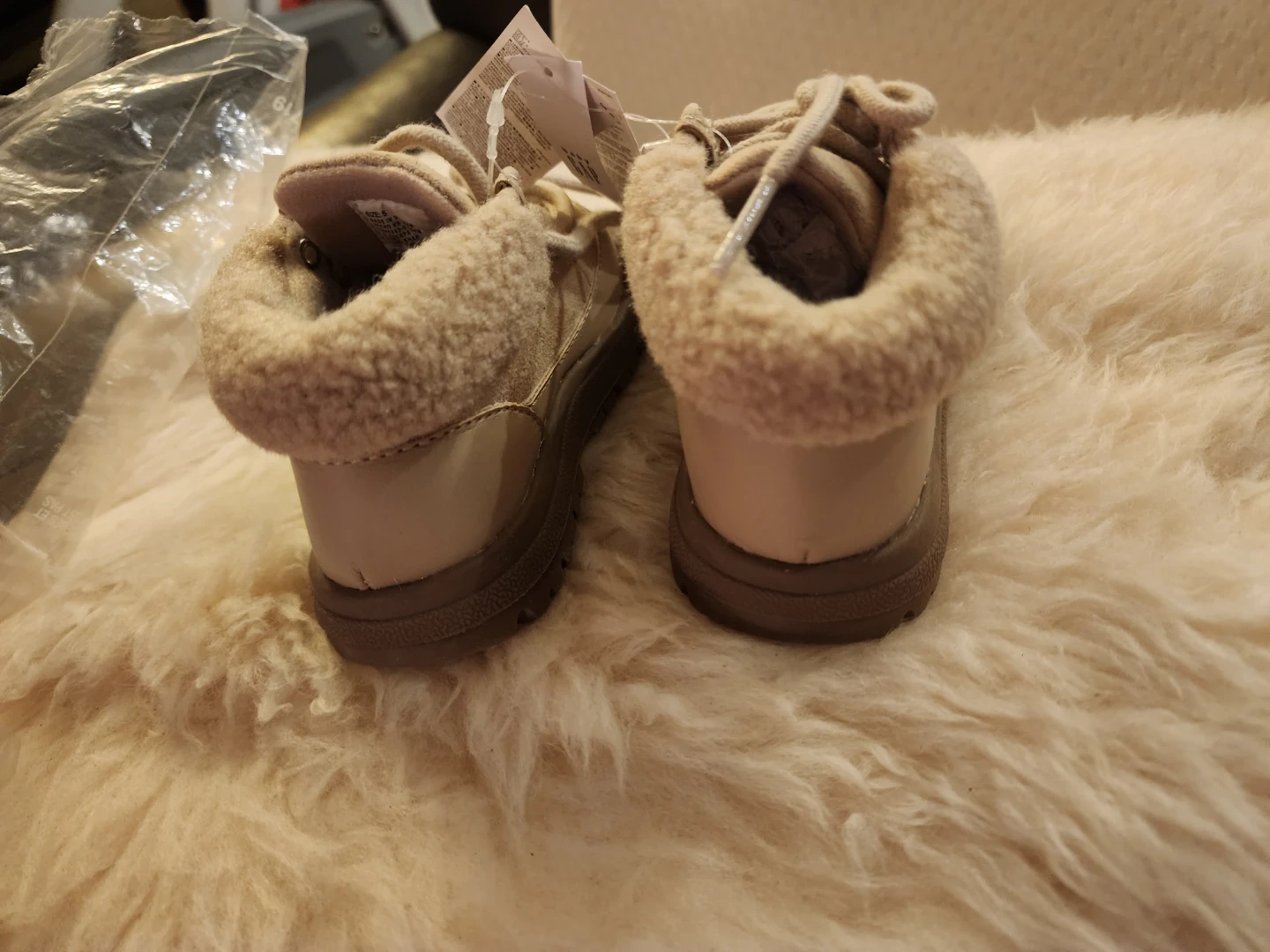 These are a pair of new Baby Gap booties, size 5! They are cozy and stylish for your little one. Perfect for keeping tiny toes warm.