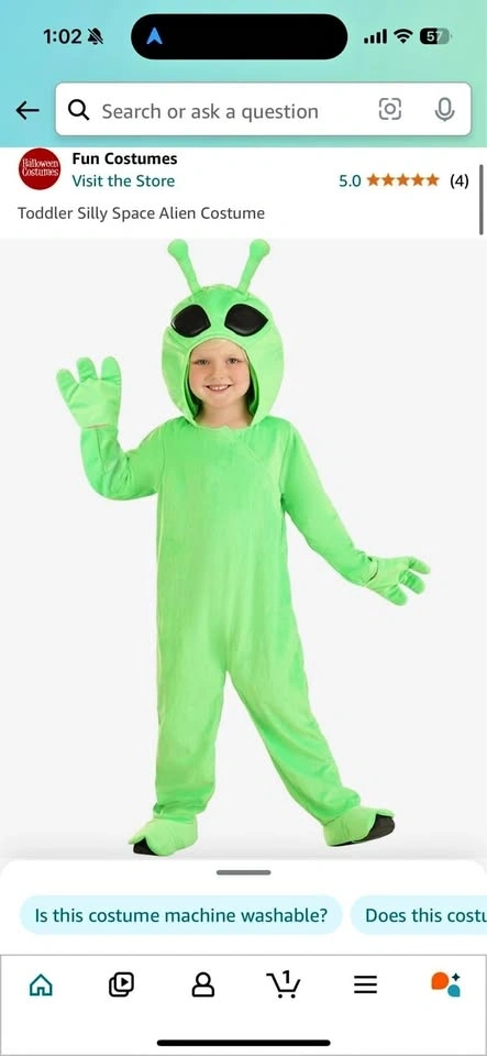 Buy & SellToddler Silly Space Alien Halloween CostumeToddler Silly Space Alien Halloween Costume$20Size 4 toddler. Pick up only.WHERE TO MEETCheck LocationView MapSELLERDinaMidwood100 reviews0 chats·0 favorites·0 viewsSEND CHAT TO SELLERHi Dina! I’m interested in your listing.Hi Dina! I’m interested in your listing.Get the Karrot app to chatSign In to chat
