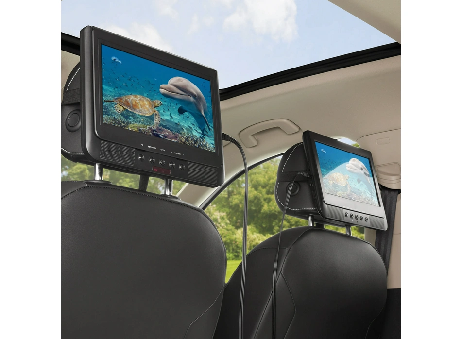 Dual Displays: Features two 10-inch TFT LCD color displays with a 1024 x 600 native resolution and a 16:9 aspect ratio for shared viewing.