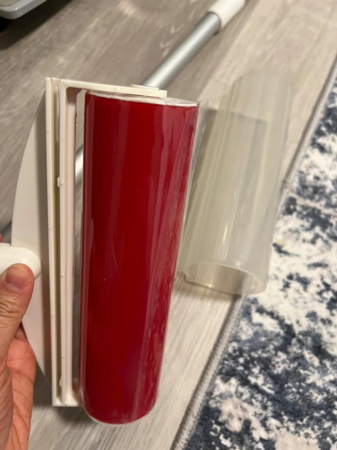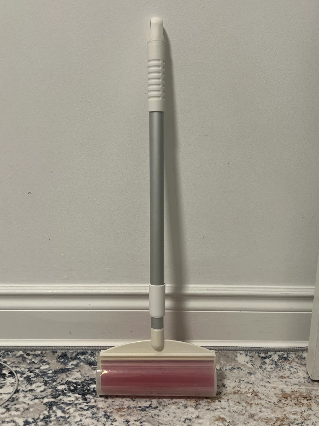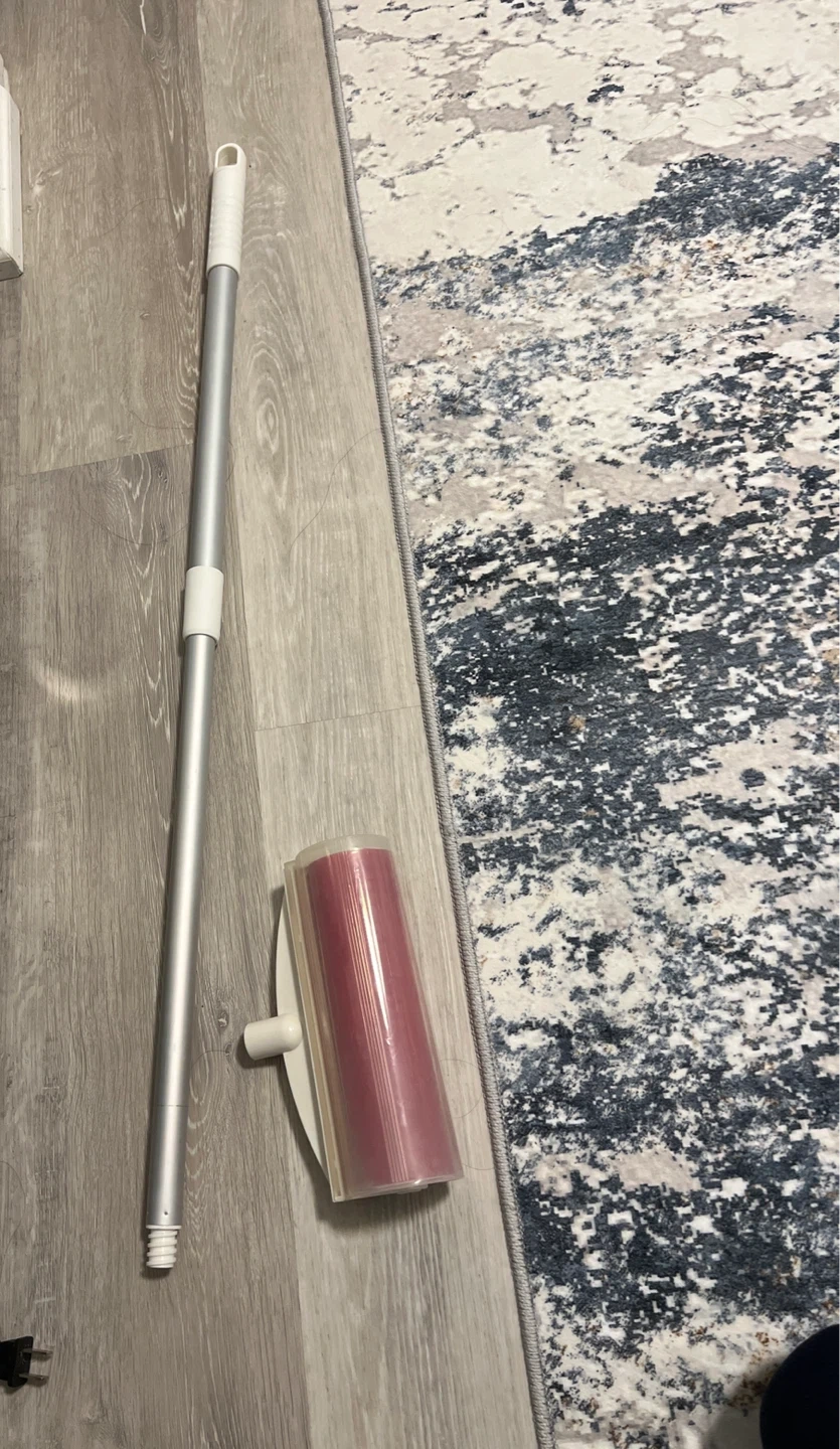 Reusable lint roller unused, with plastic protective still on. Extendable arm. Plastic