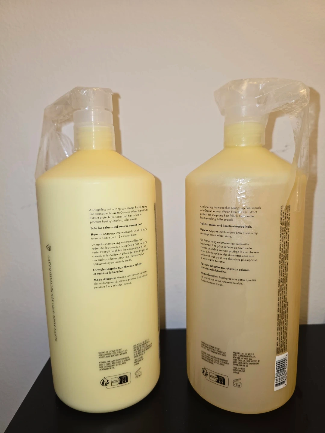 Get fuller-looking hair with this Fekkai Full Blown Volume Shampoo and Conditioner set. Both bottles contain 1 Liter / 33.8 Fl.oz. They're formulated with Coconut Water and Oak Extract. This set is great for achieving weightless volume.