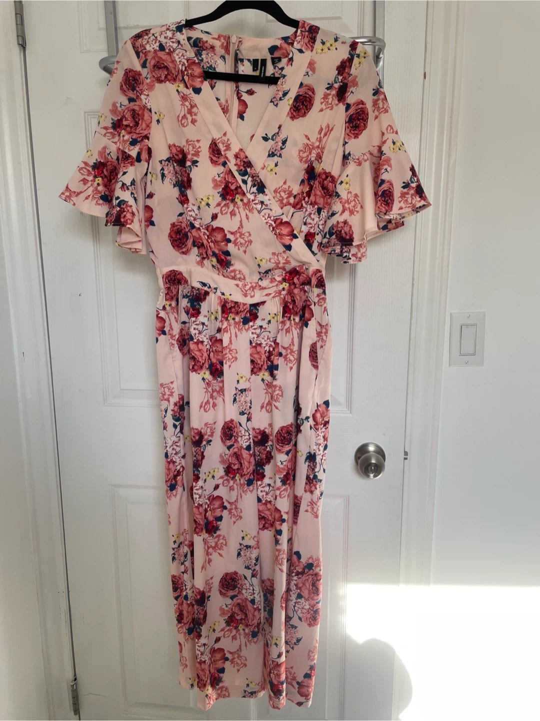 Vera Moda floral jumpsuit with zipper at back. Front waist is flat with additional elastic in back for a fitted look. Worn once, size XS.