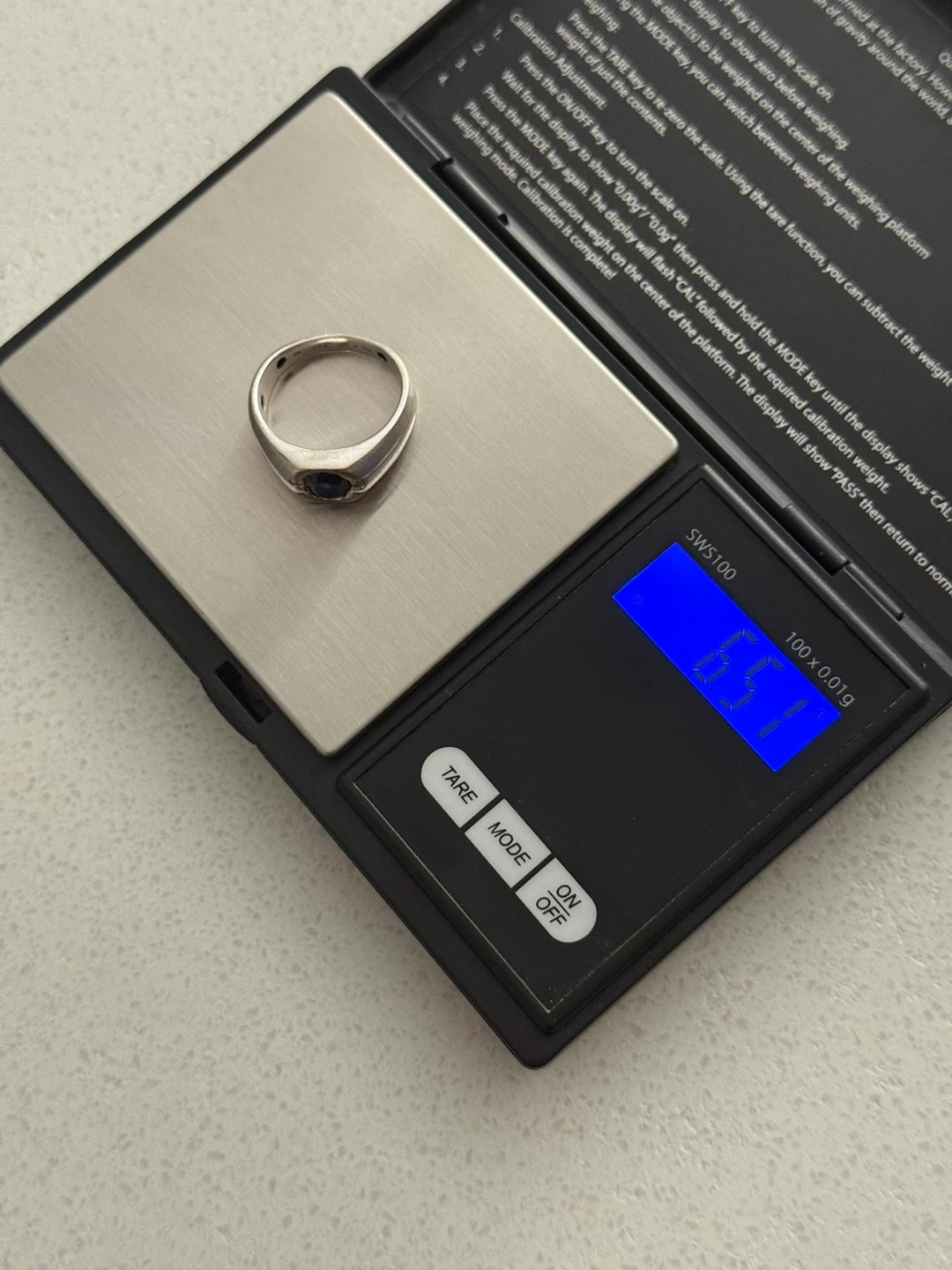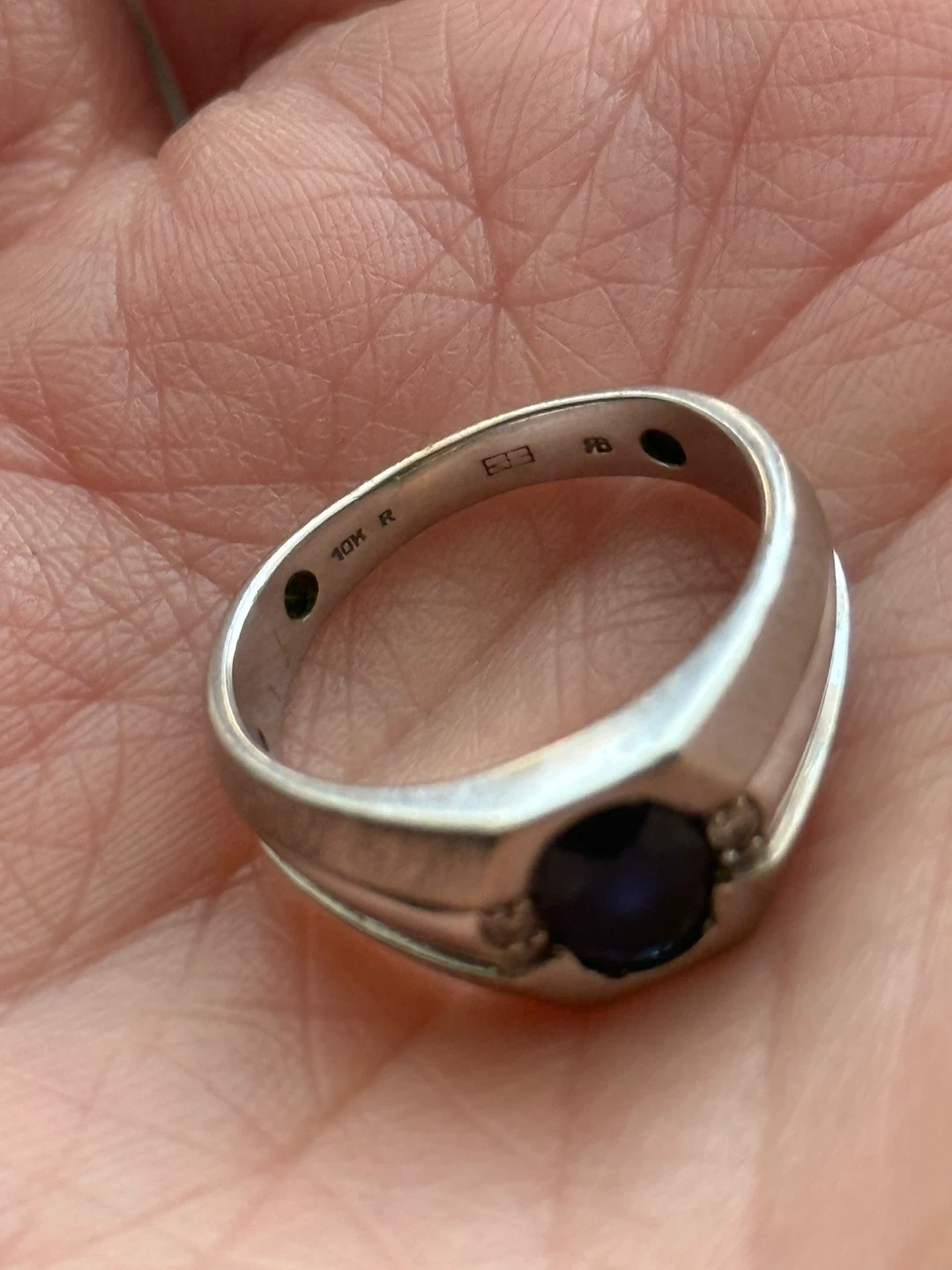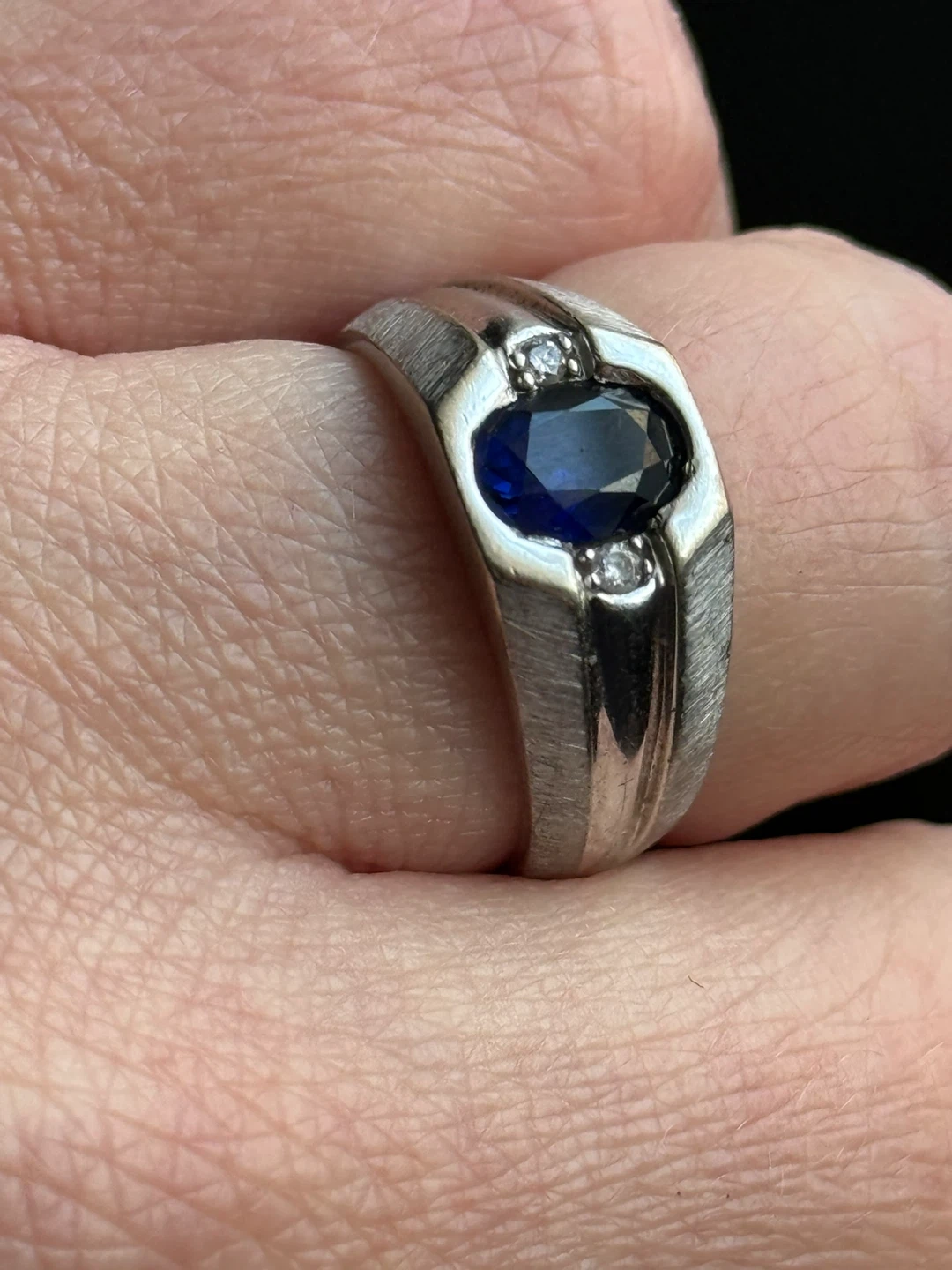 Vintage 10K White Gold Sapphire and Diamond Men's Ring
