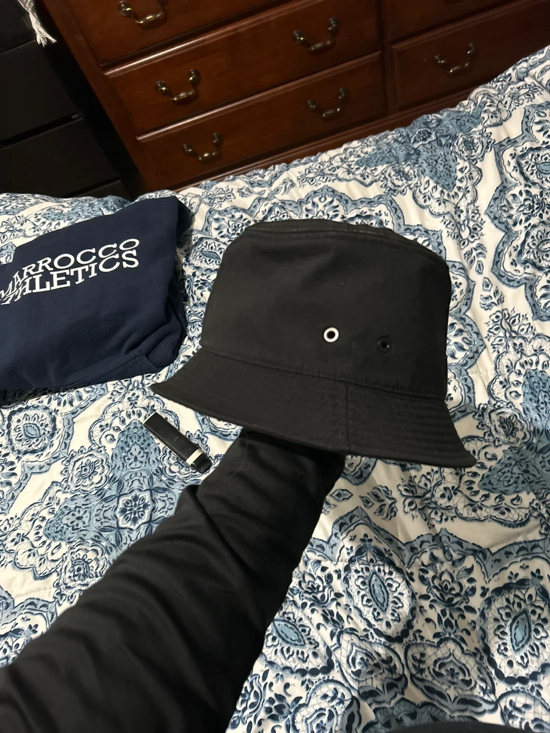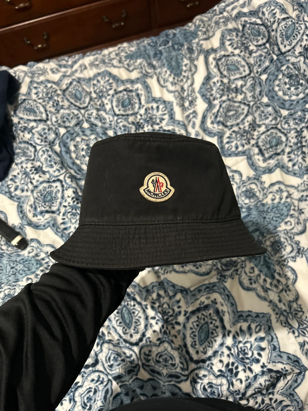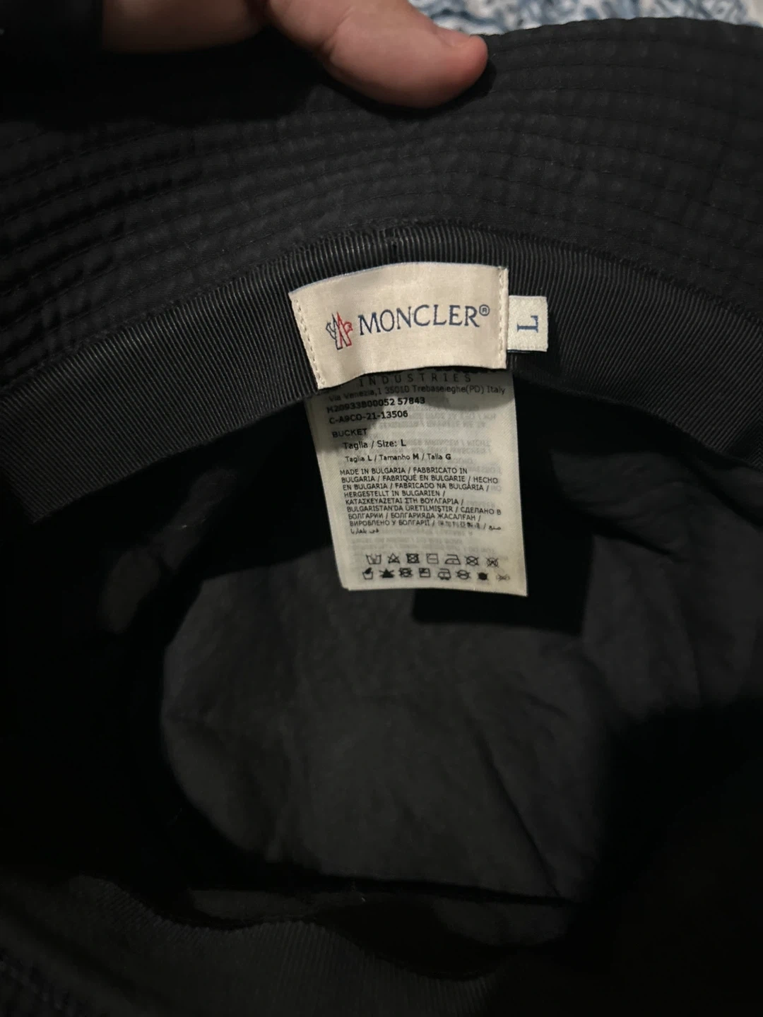 A classic black Moncler bucket hat. This hat is size L and features the iconic Moncler logo on the front. It's made for style and comfort. Perfect for sunny days! Bought it for 800 about a year and a half ago ready to let it go