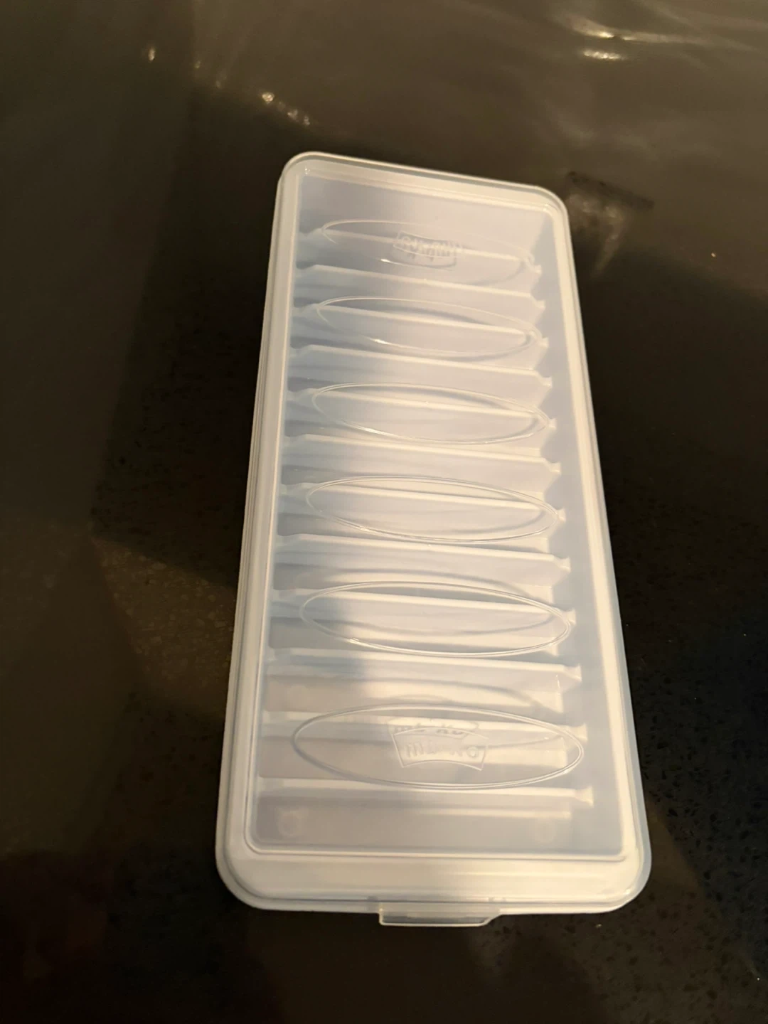 I'm selling a handy ice cube tray! It comes with a lid, which is great for preventing spills and keeping your ice fresh. It's in excellent condition and ready for a new home in your freezer