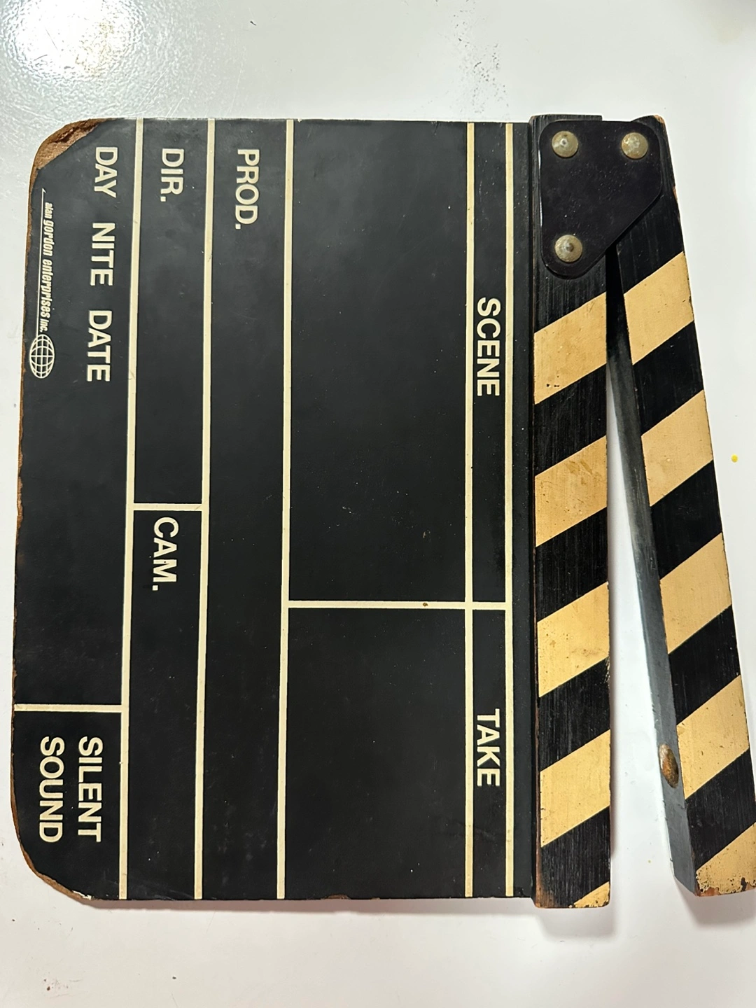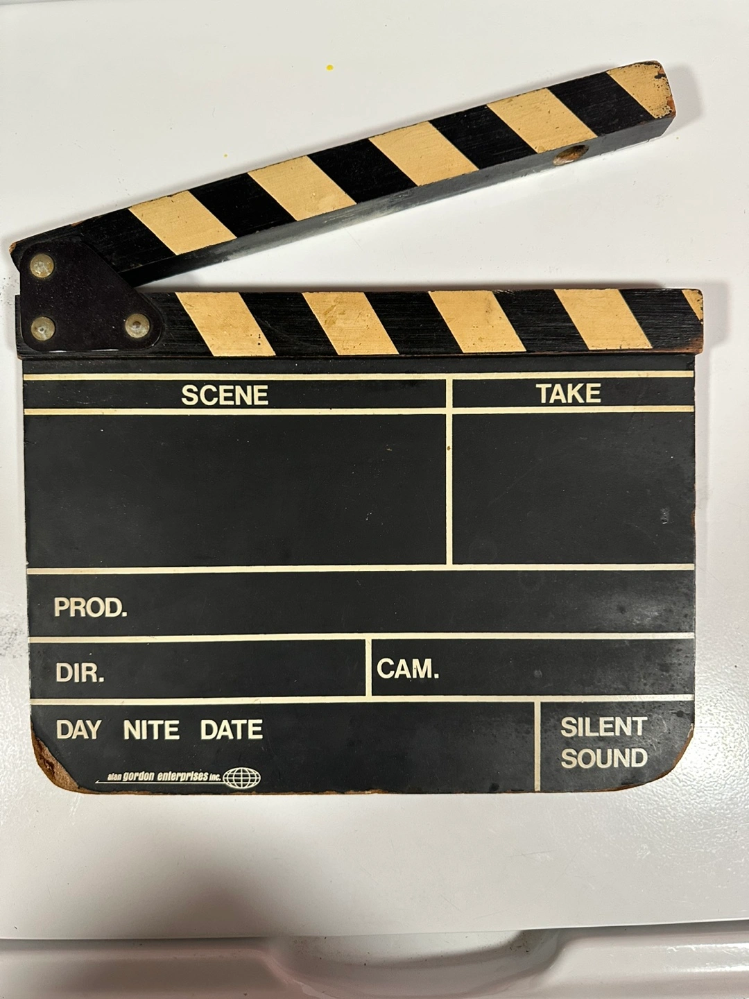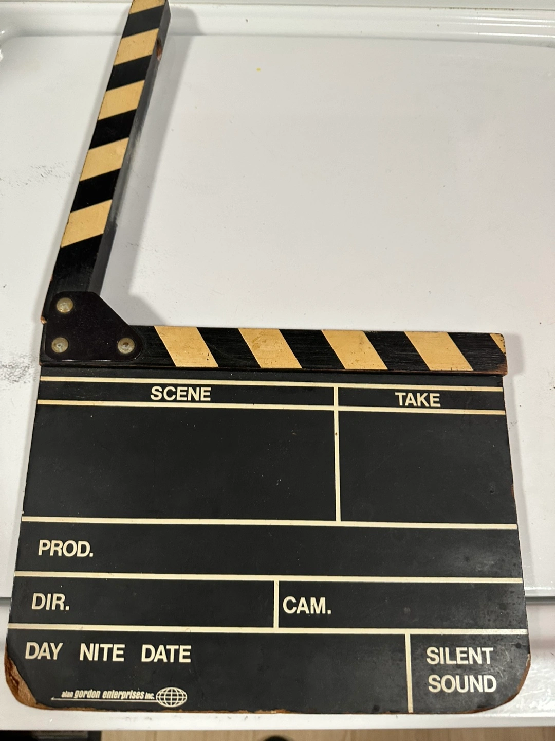 Selling a used vintage clapperboard from Alan Gordon Enterprises Inc. It shows signs of wear and use, adding to its authentic look. Perfect for film enthusiasts or as a unique decorative piece! From Hollywood CA pick up in Bronx or meet up cash only thank you