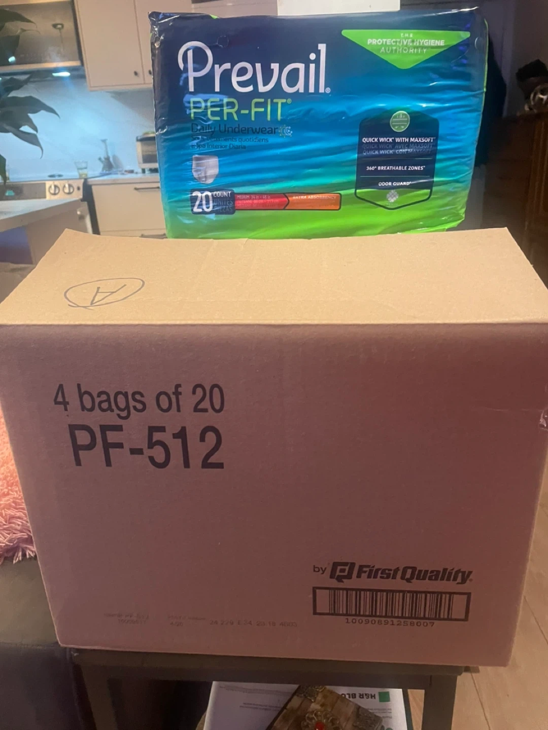 Prevail Per-Fit daily underwear in medium size. This package contains 4 bags, with 20 units in each bag. It features Quick Wick with MaxSoft technology for fast absorbency. Breathable zones and odor guard are also included.