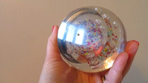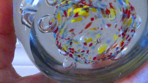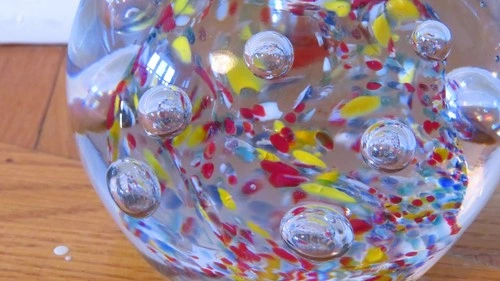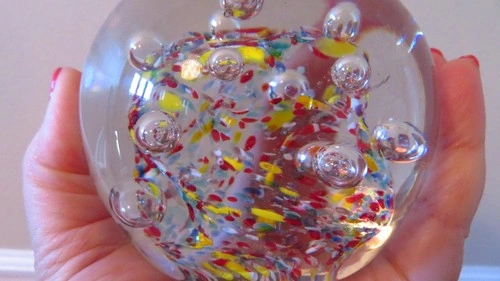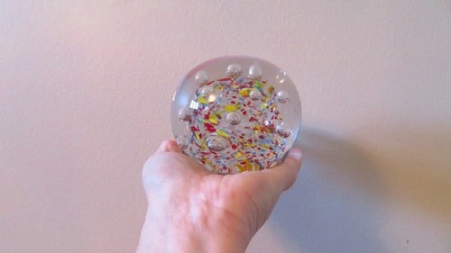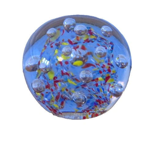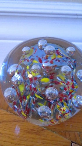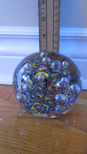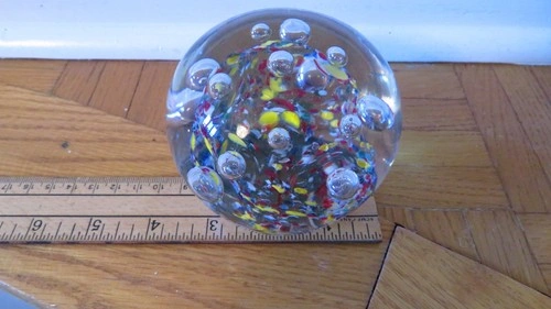 Vtg large Millefiori Glass Paperweight: Multicolor Art Glass con