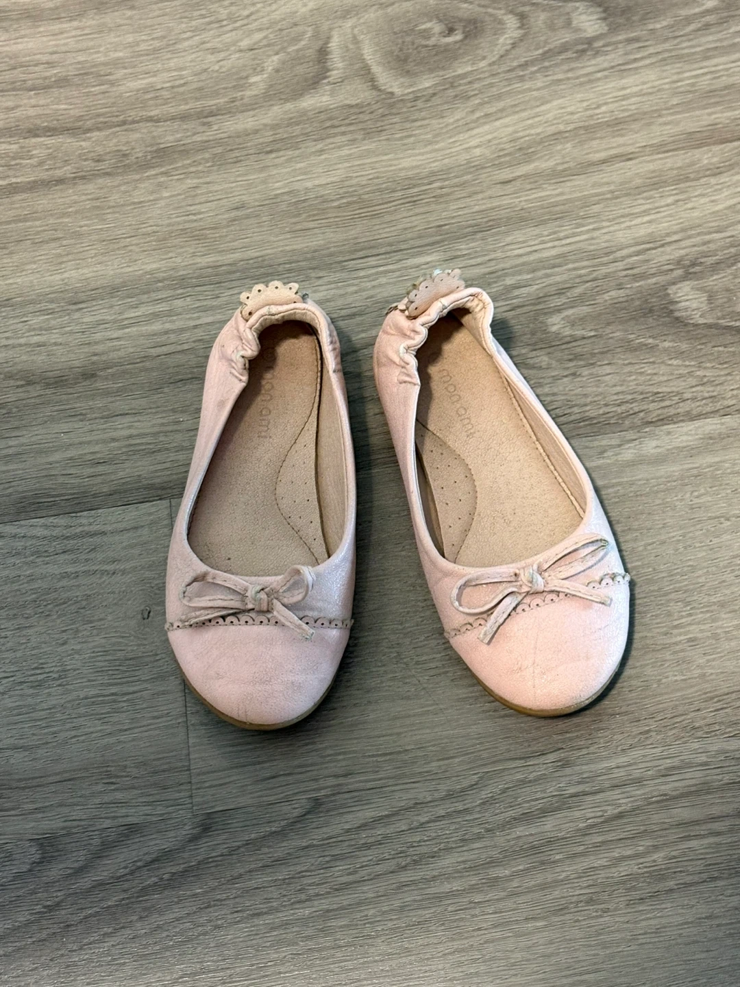 These are cute pink ballet flats. They have a small bow on the toe and a decorative scalloped edge. They're soft and flexible for comfort.