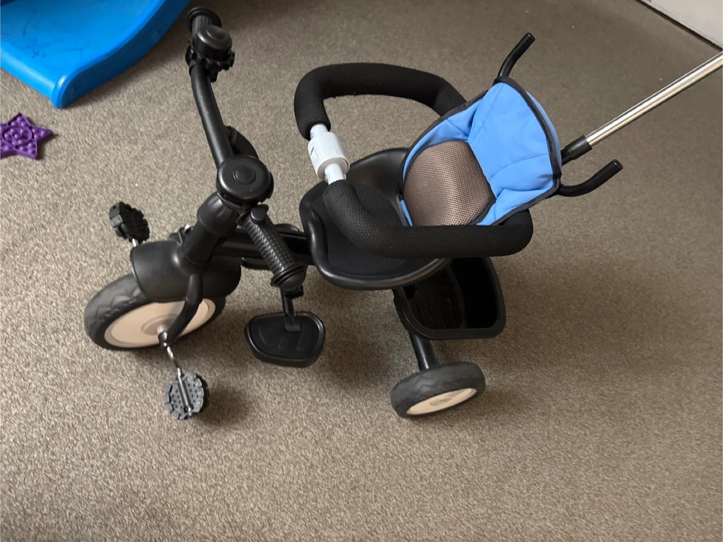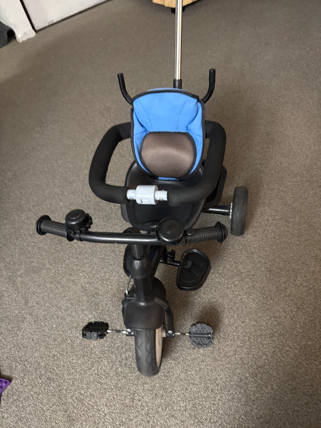 This is a versatile tricycle for young children. It features a comfortable padded seat with a safety harness and a removable parent push handle. The sturdy frame ensures durability for outdoor play. This tricycle is great for helping toddlers develop balance and coordination.