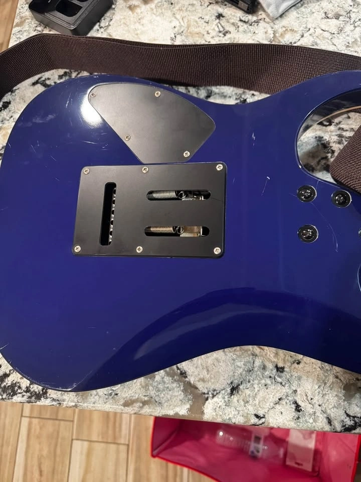 Selling my Ibanez Electric Guitar. I got it to learn how to play but didn't get into it. It was professionally set up and hasn't been used since. Comes with a nice strap and strap locks. I might have the original strap screws as well. Will include some cleaning products and the instrument cable if I find it. I can also sell an amp for extra if you're interested. There are some scratches on the back of the body from when I moved.