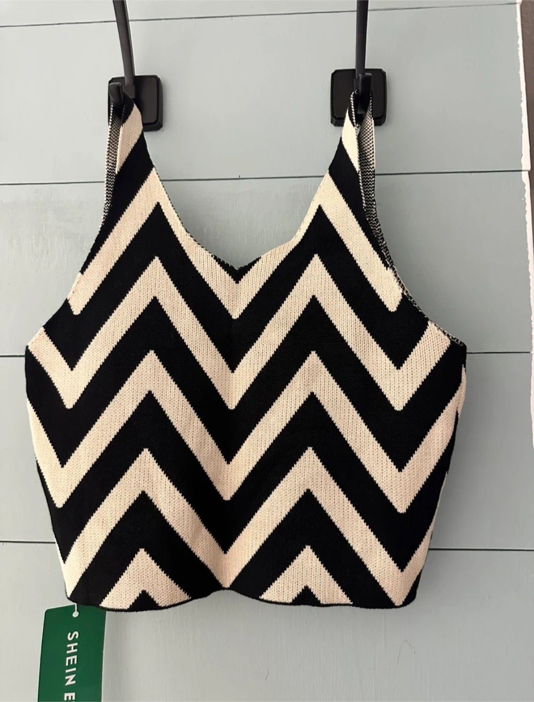Cute SHEIN crop top with a bold black and white chevron pattern! It's a knitted material and size small. Perfect for adding a fun touch to your outfit!
