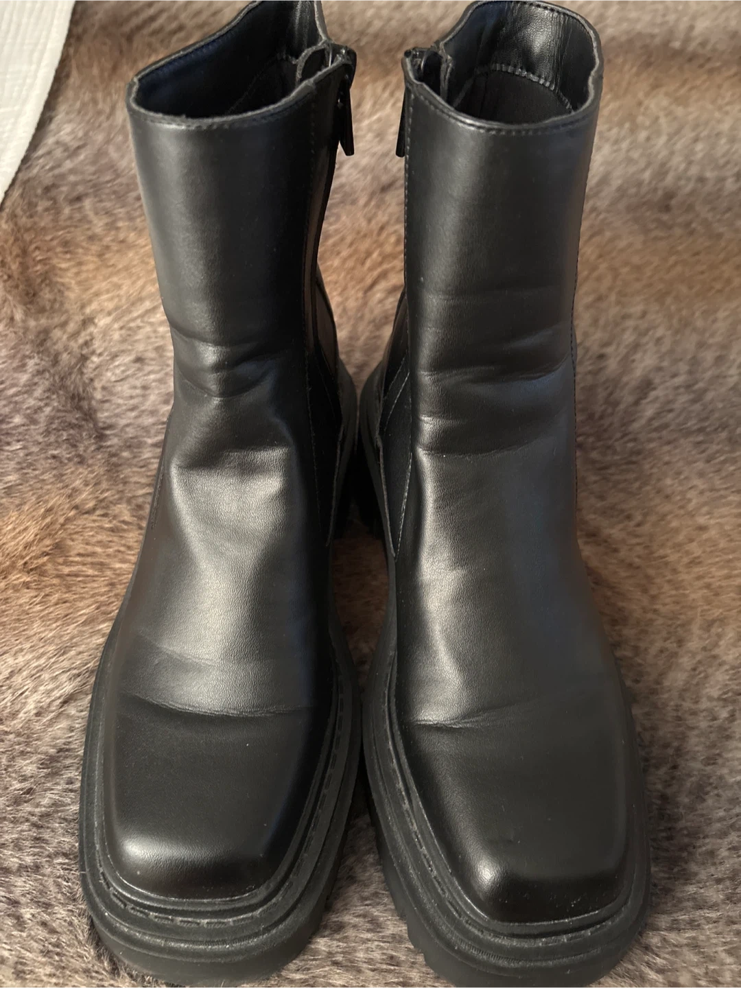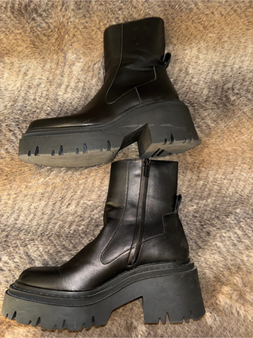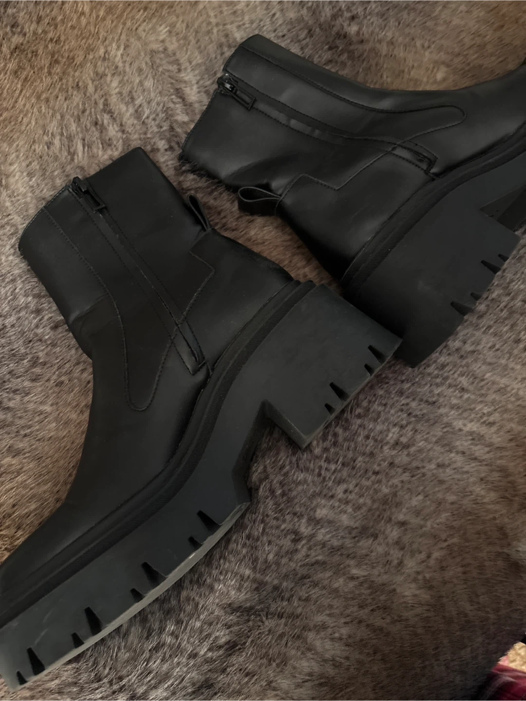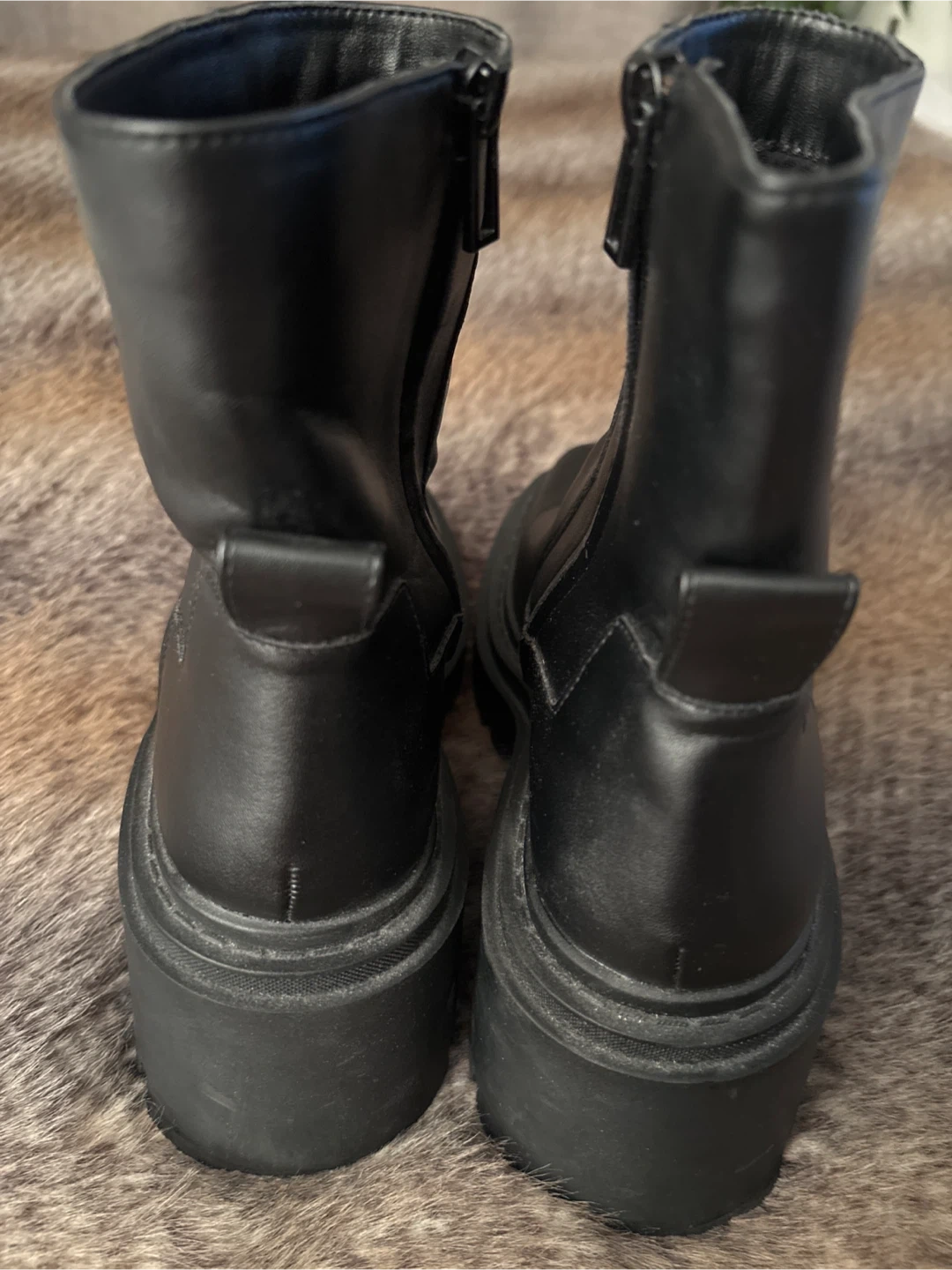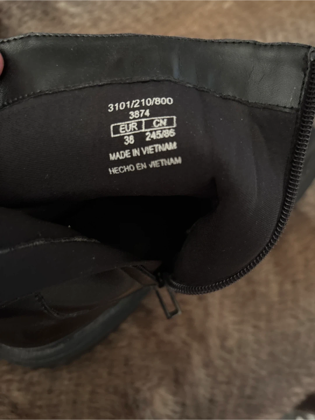 Zara black boots. They are a size 38 (European). Made in Vietnam. Worn once.