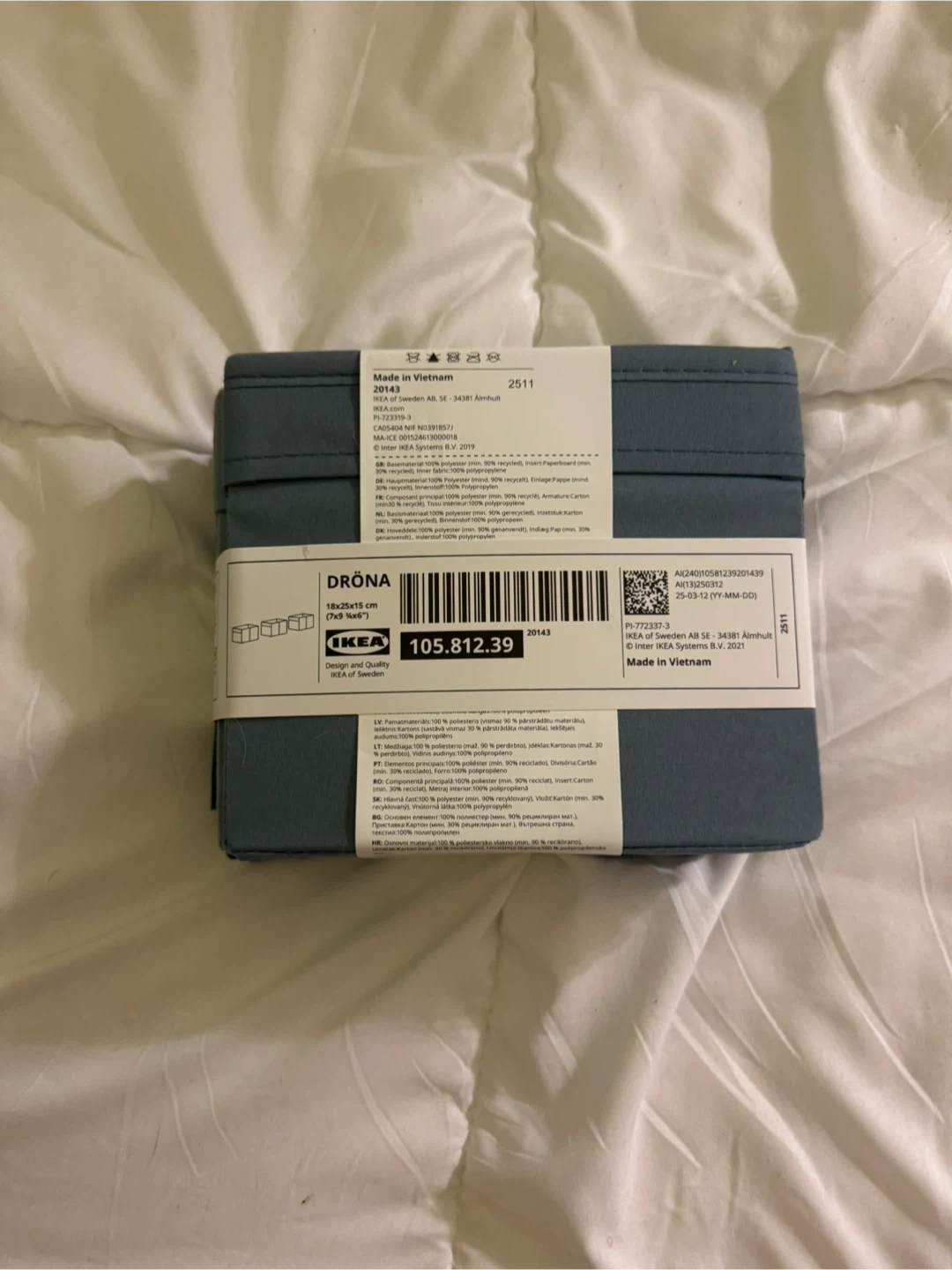 Selling a few IKEA Dröna boxes new, never used! These are perfect for organizing shelves or drawers.
