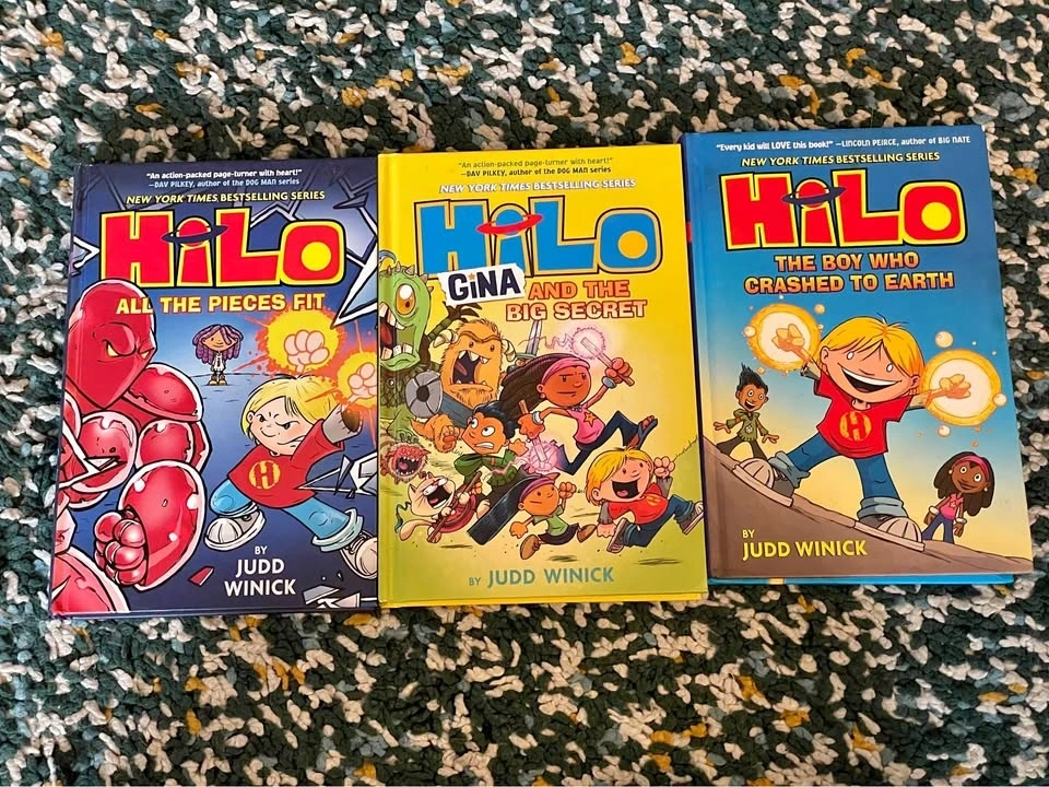 Set of 3 HiLo books by Judd Winick, perfect for graphic-novel lovers, reluctant readers, and anyone who enjoys humor, adventure, and heart. Pick up in Brooklyn ZIP Code 11215. Cash only. Smoke and pet-free home.