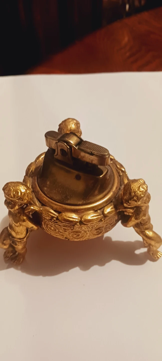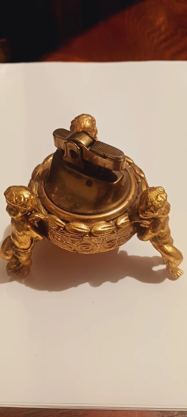 Vintage Cherub Desk Lighter - Gold Tone