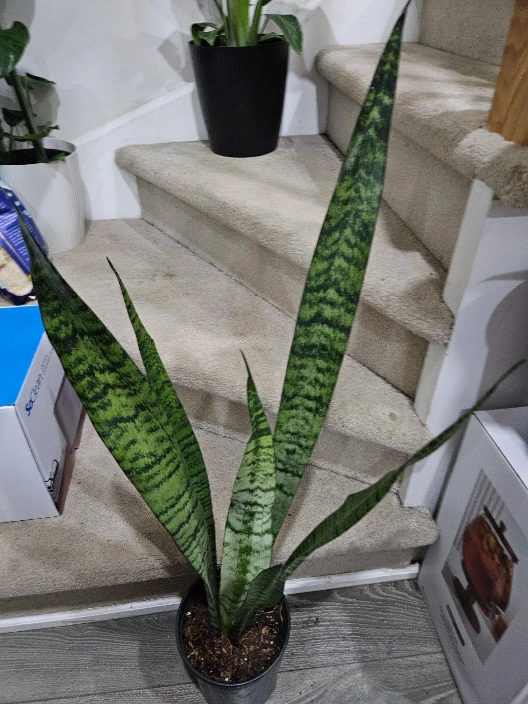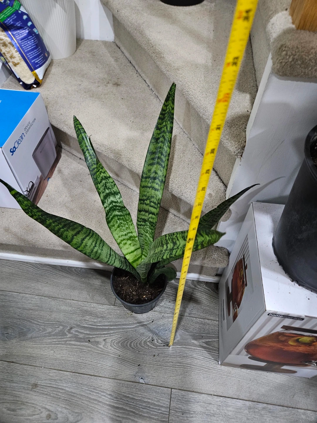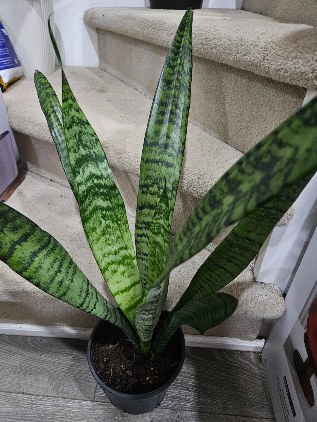 This is a beautiful snake plant, also known as Sansevieria. It's in a 7-inch pot and stands about 18 inches tall. These plants are super easy to care for and make a great addition to any home!