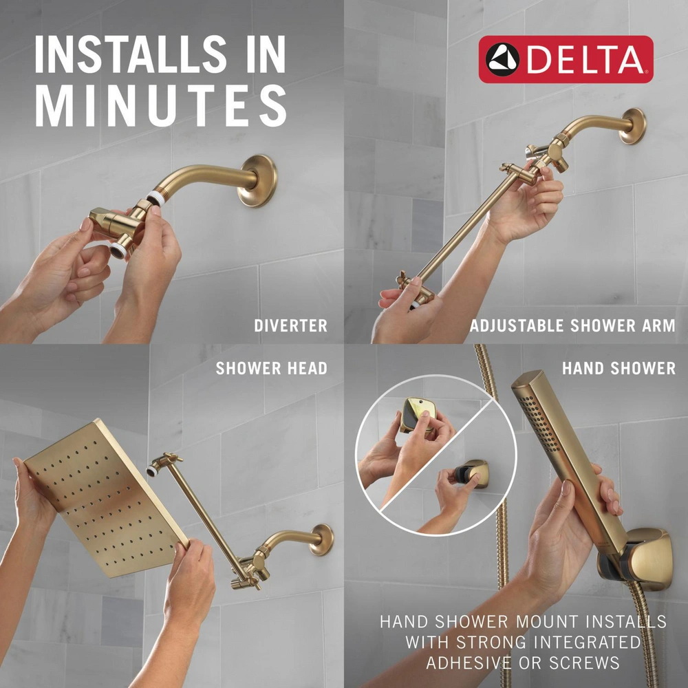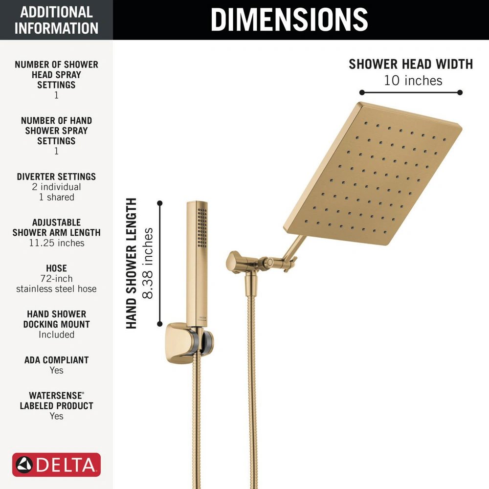 Brand New Champagne Bronze DELTA FAUCET 10-inch Raincan Shower Head and Hand Held Shower Combo, Gold Square Shower Head, Rainfall Shower Head, Hand Shower, High Pressure Shower, 1.75 GPM Flow Rate, Champagne Bronze 75527- CZ