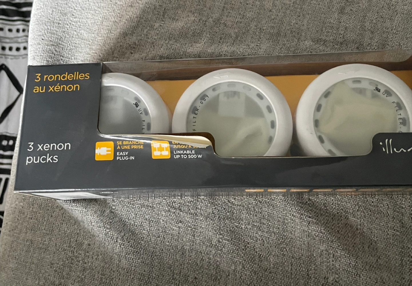 Selling a brand new set of Illume 3 Xenon Pucks! They're still in the original packaging and ready to brighten up your space. Includes all original components and accessories