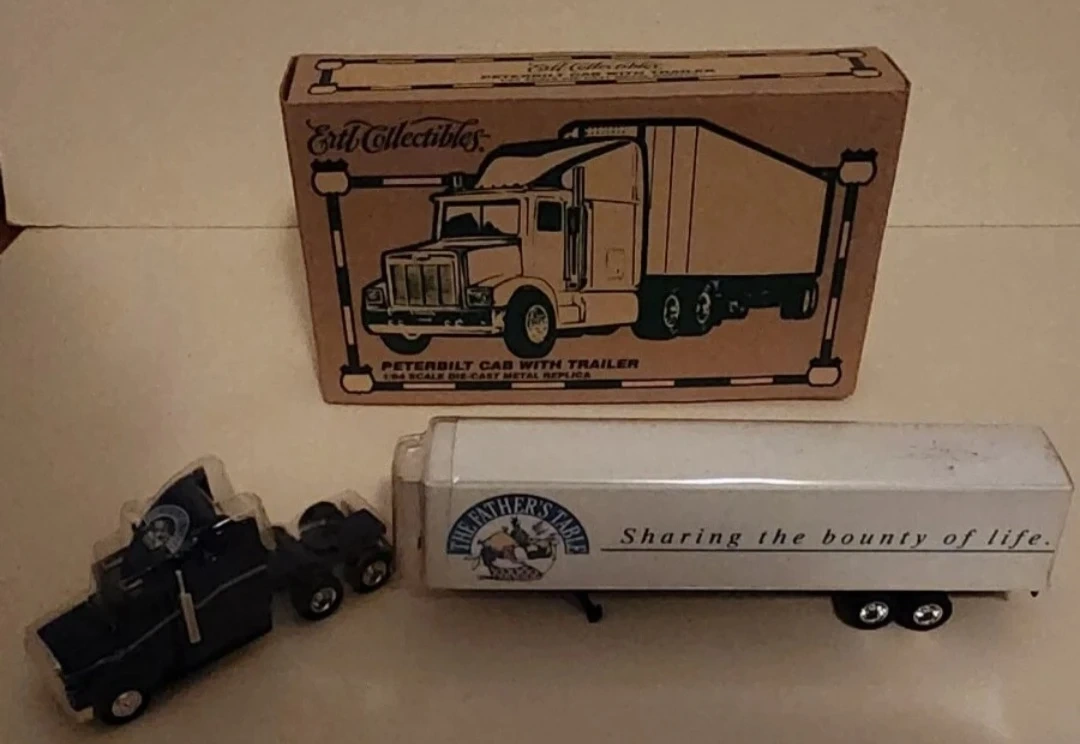 Selling an Ertl Collectibles Peterbilt Cab with Trailer die-cast metal replica. It comes with the original box. The trailer has "The Father's Table" logo on it, sharing the bounty of life. A percentage of profits is donated to charities worldwide