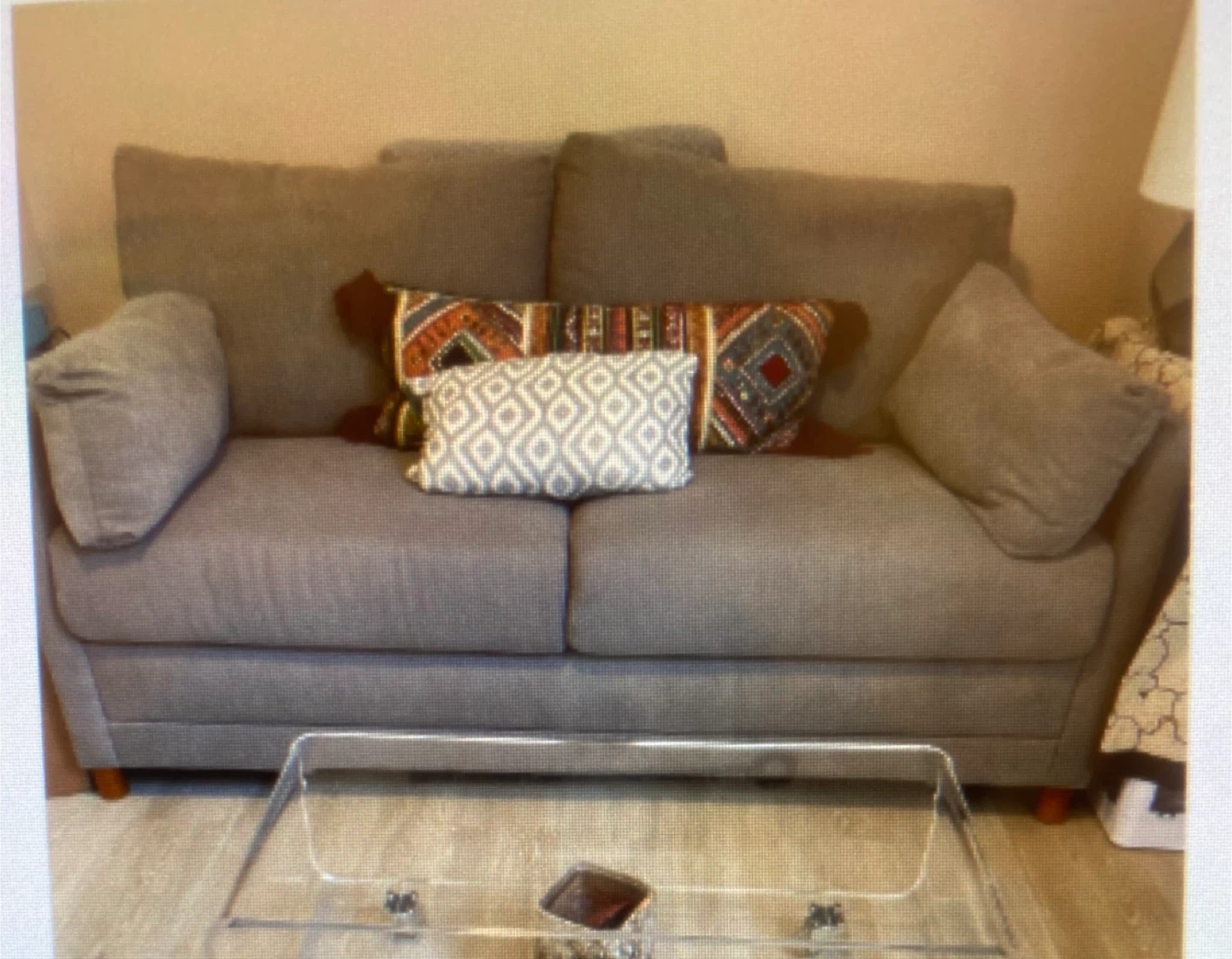 Selling a comfortable, Jennifer Convertible, gray, fabric sofa bed . It's in perfect, like-new condition.