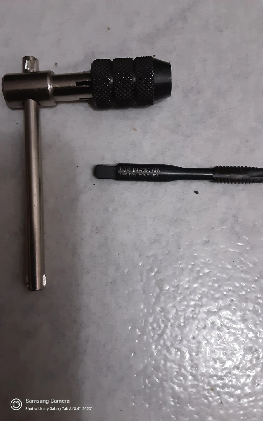 This is a tap and die wrench tool. It's designed for threading and rethreading. The tool comes with interchangeable tap bits.