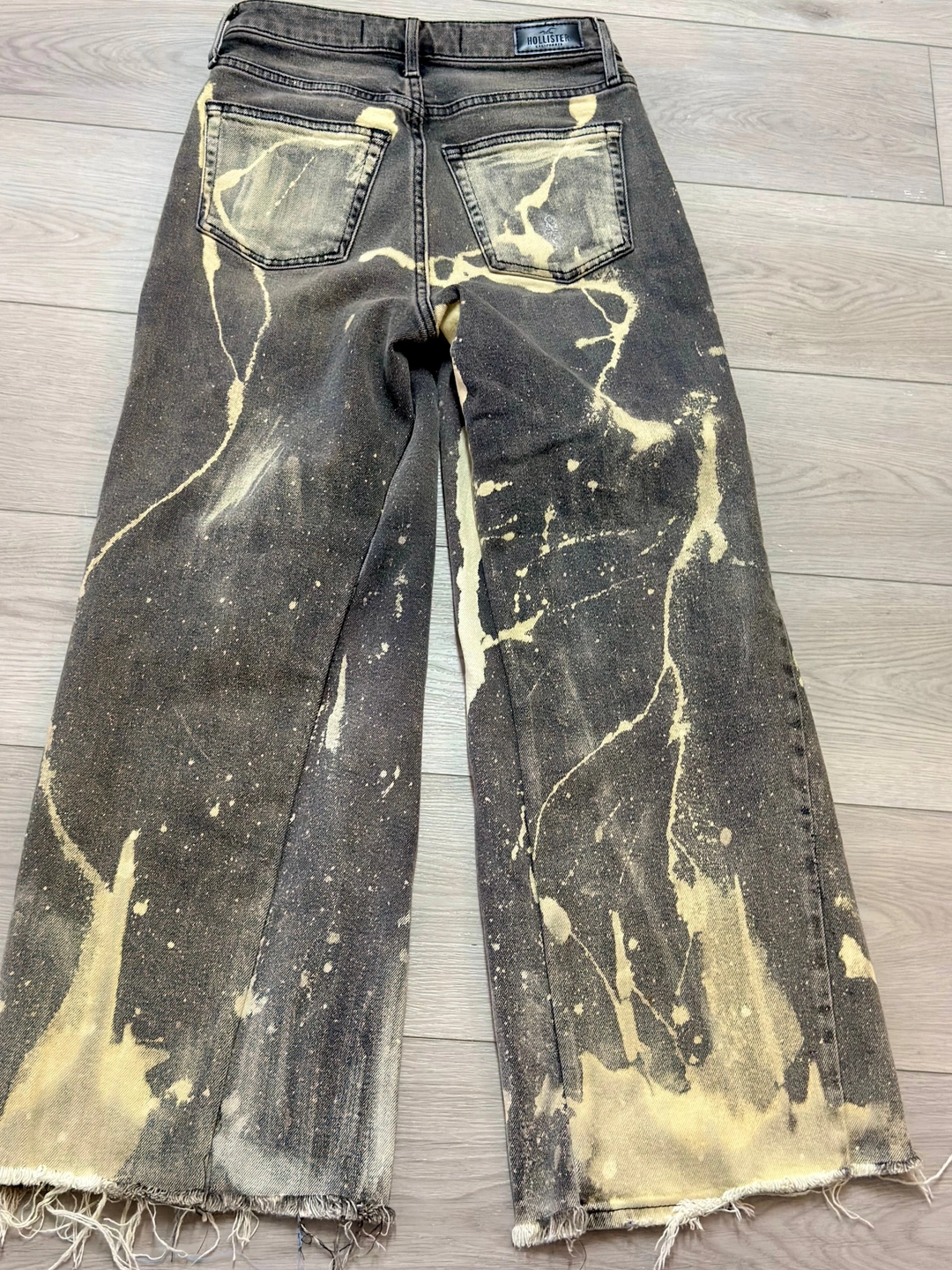 Looking for a statement piece that no one else owns? These Hollister High-Rise Wide-Leg jeans have been hand-transformed into a one-of-a-kind streetwear staple. Featuring a custom "Galaxy" bleach-splatter effect, these are perfect for anyone looking to add an edgy, artistic vibe to their wardrobe.