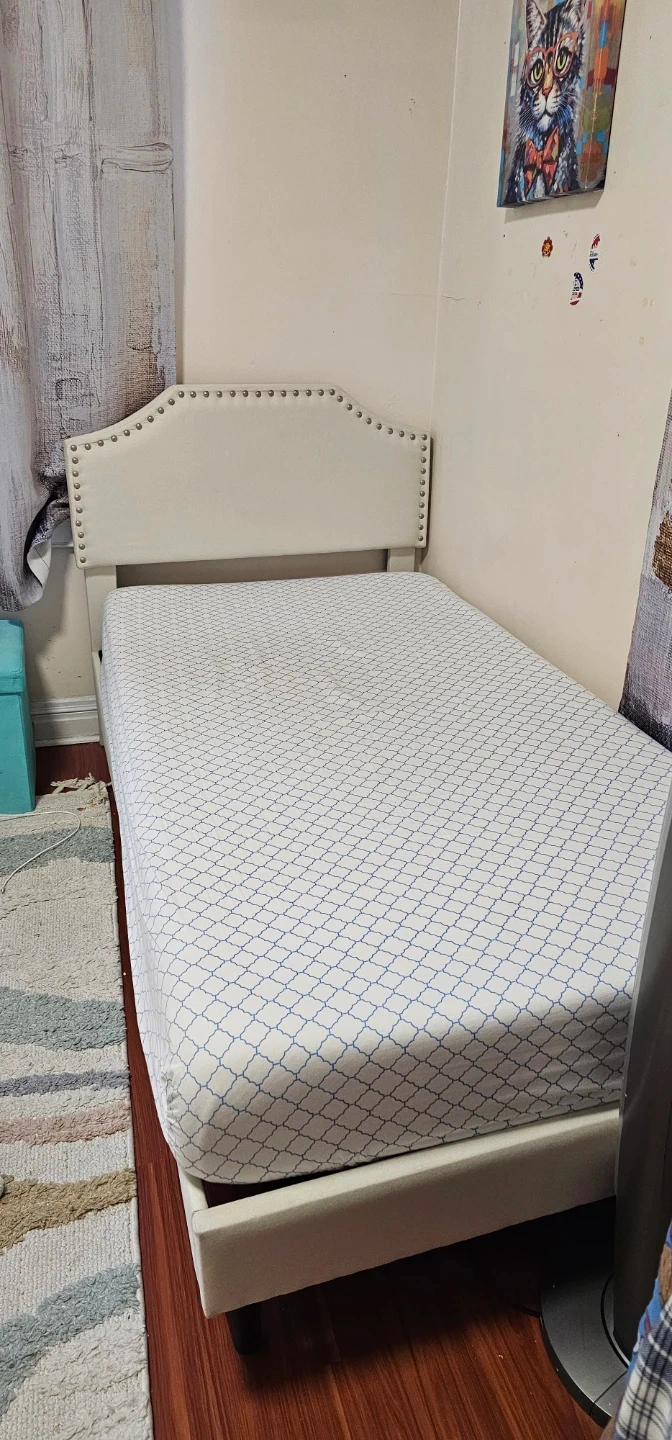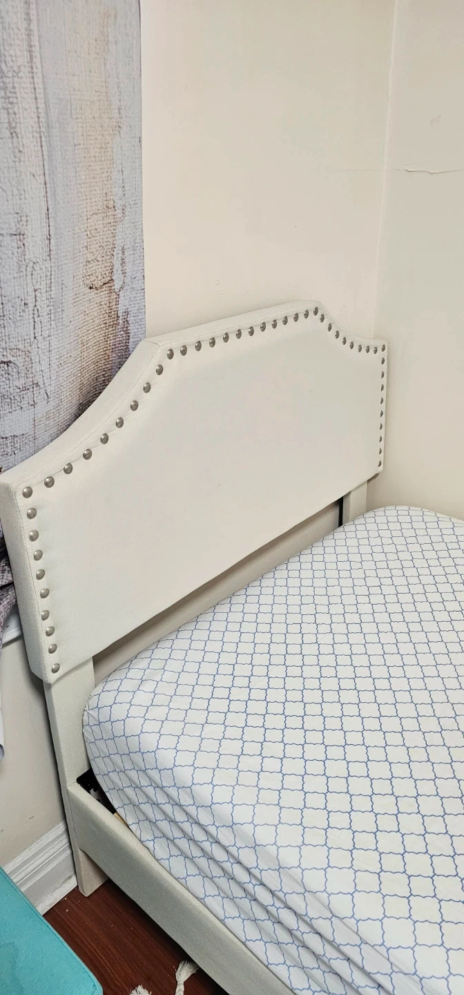 White Upholstered Twin Bed Frame with Headboard