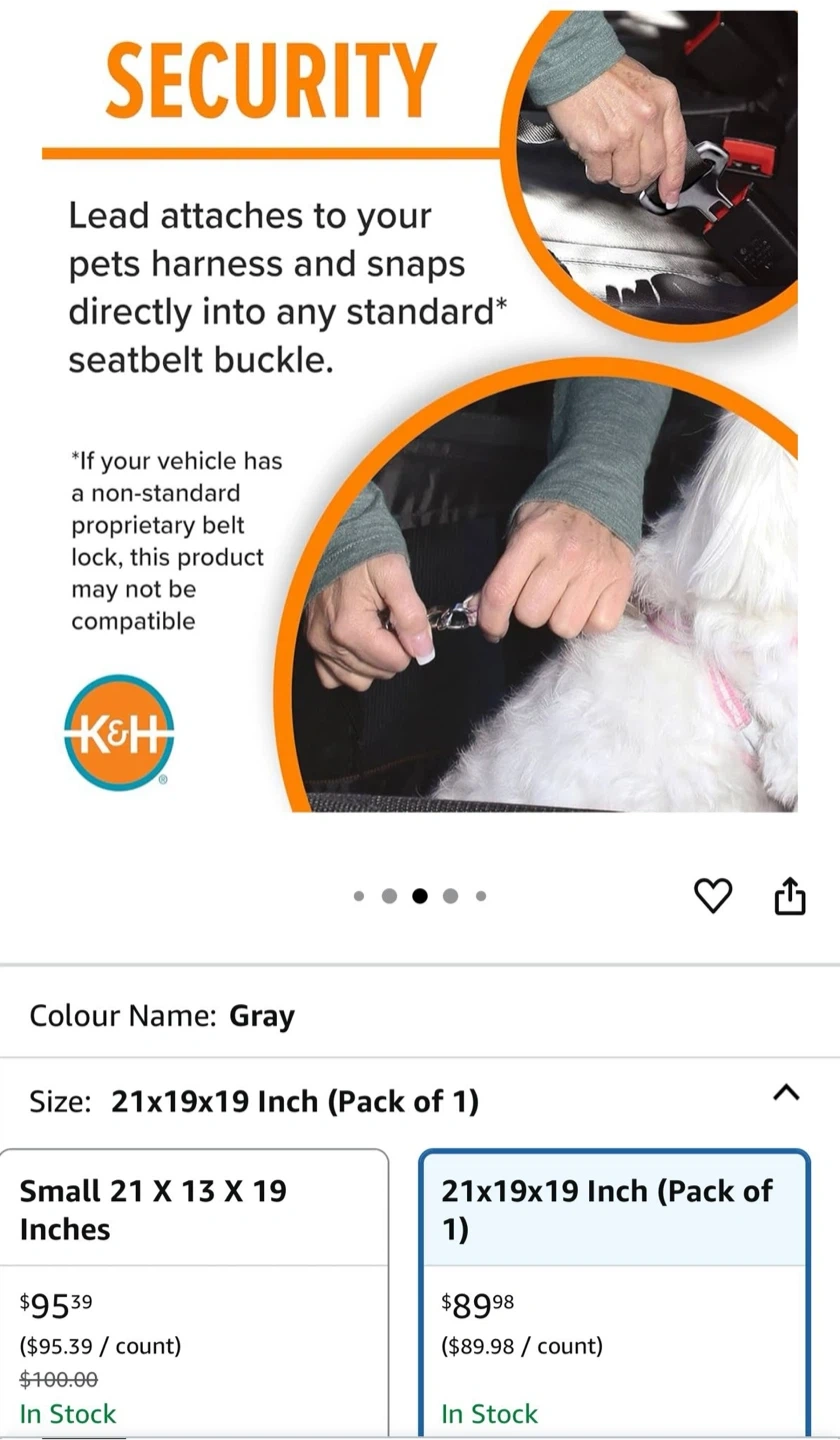 Keep your pet secure while traveling with this K&H Buckle n' Go Pet Seat. It's a large, gray seat designed for use on the left or right side of a vehicle's back seat. Add your pet's favourite blanket for extra comfort and sense of security! Dimensions: 21" L x 19" W x 19" H.