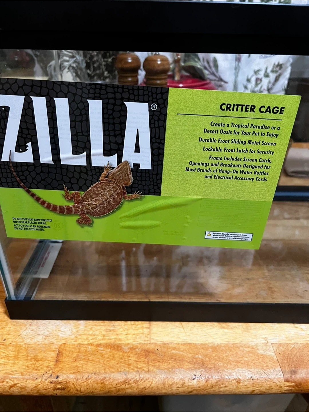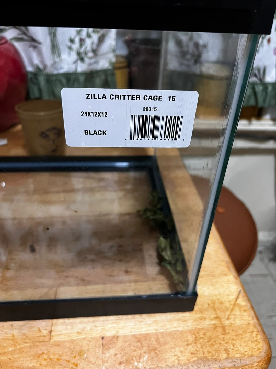 Selling a Zilla Critter Cage, perfect for creating a comfortable habitat for your pet! The cage measures 24x12x12 inches and features a durable top sliding metal screen and a lockable latch for security. The frame includes a screen catch, openings, and breakouts designed for most brands of hang-on water bottles and electrical accessory cords