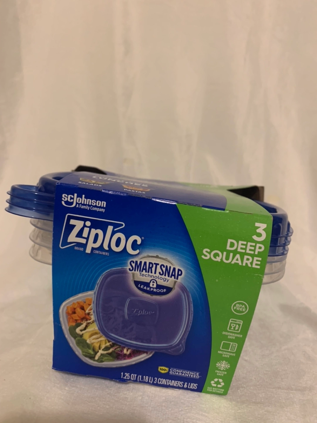 3 deep square containers with lids. Leakproof and BPA free.