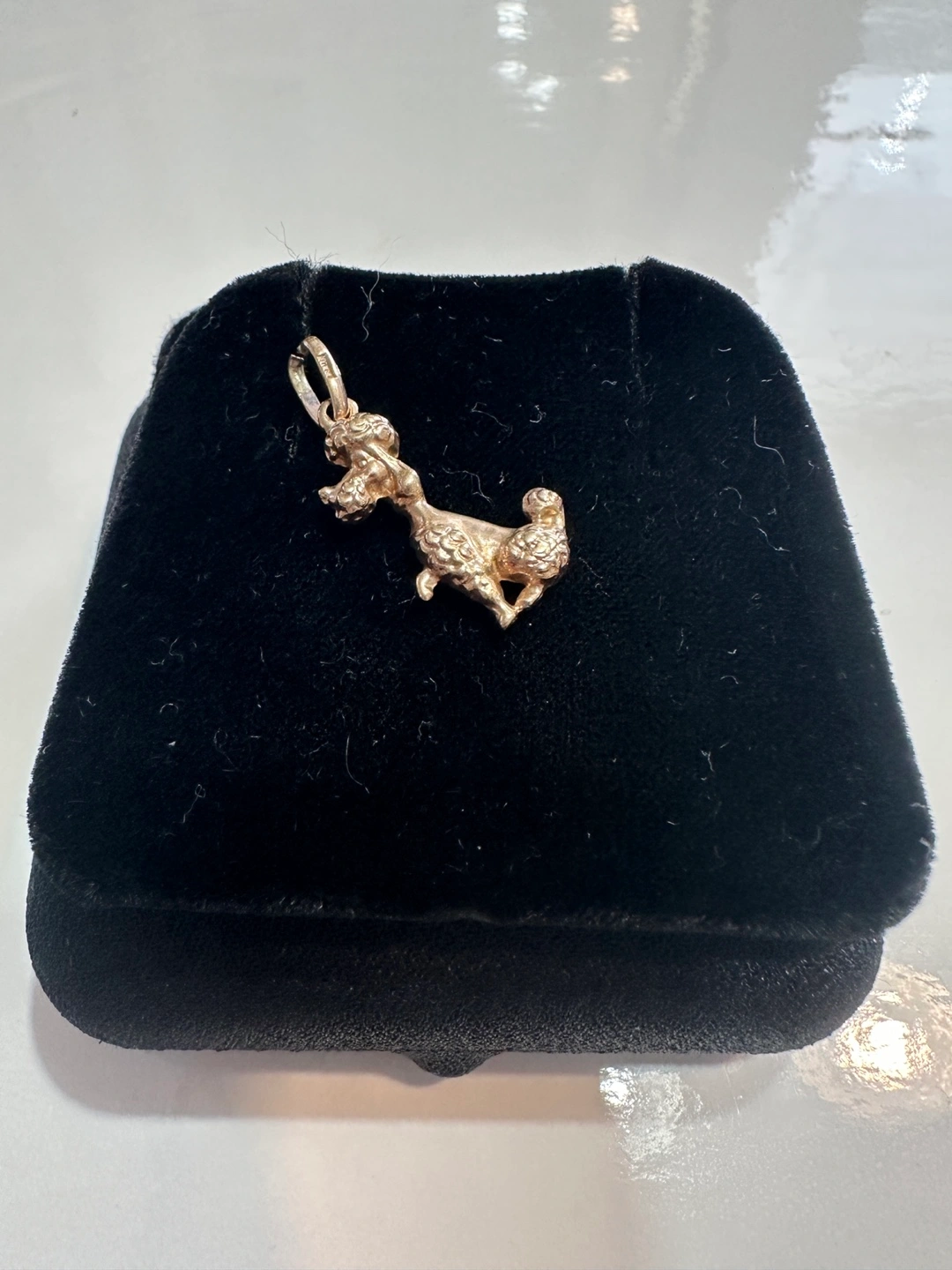 Cute gold poodle charm pendant! Perfect for adding a touch of whimsy to your jewellery collection. It's in great condition and ready to find a new home