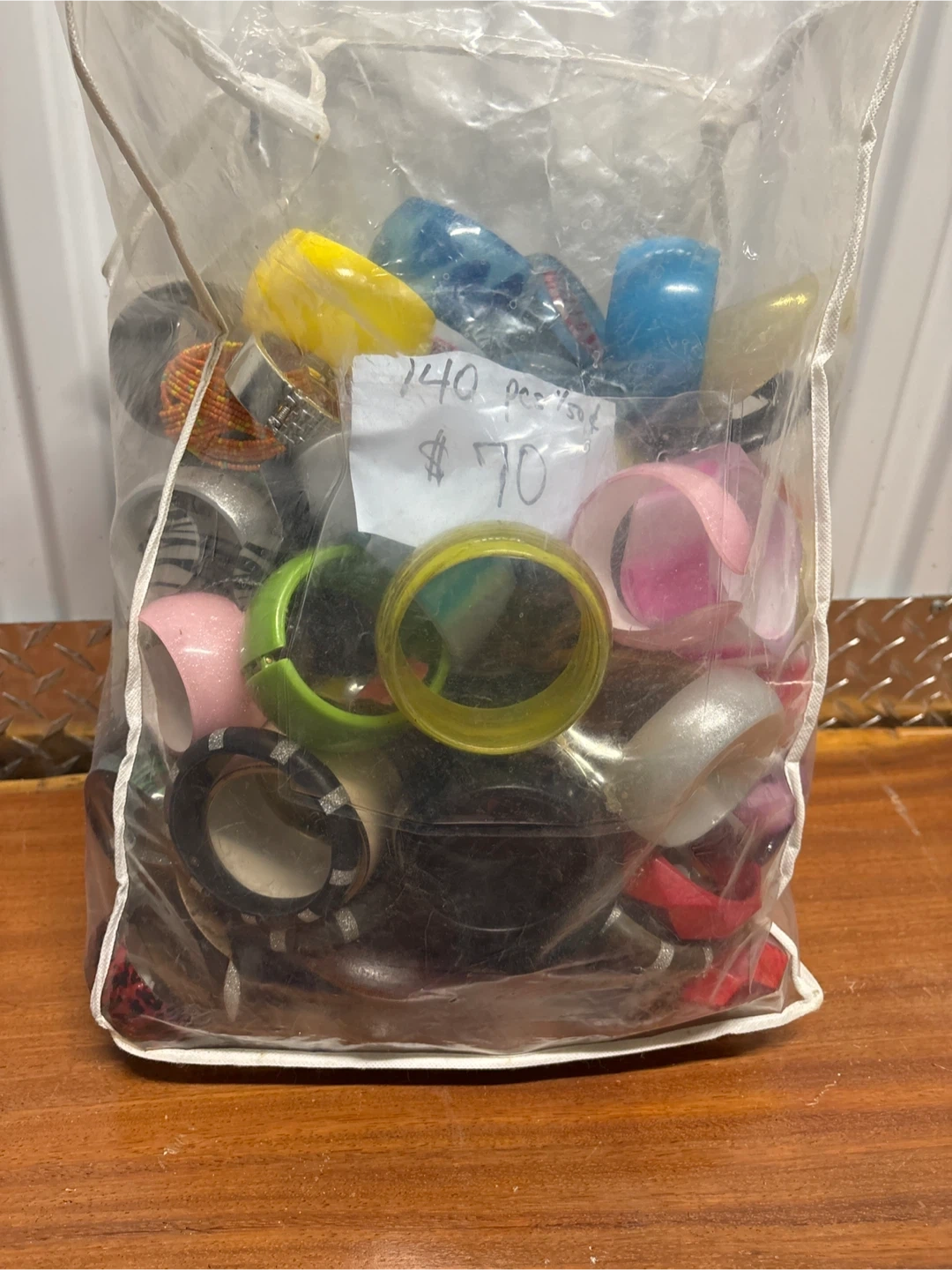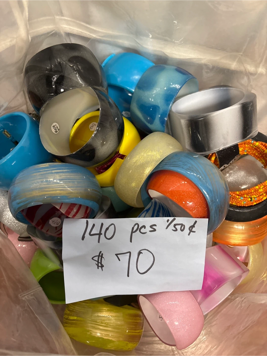 This is a large lot of assorted bracelets and bangles! You'll get 140 pieces in various colors and styles. It's a great mix of fun accessories. Great for adding to your collection or for resale!