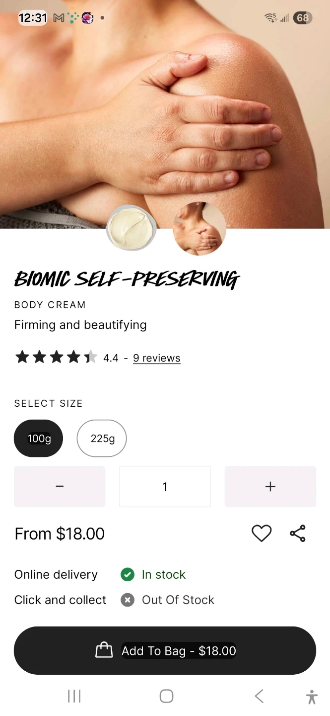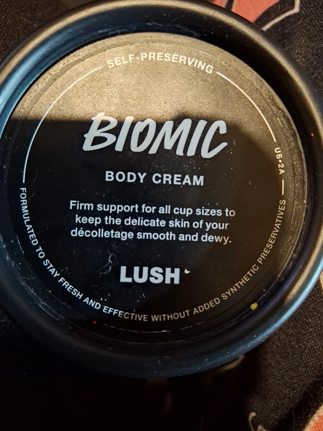 Selling a Lush Biomic Body Cream! It's a self-preserving formula designed to firm and beautify, providing firm support for all cup sizes to keep the delicate skin of your décolletage smooth and dewy. Available in a 225g size
