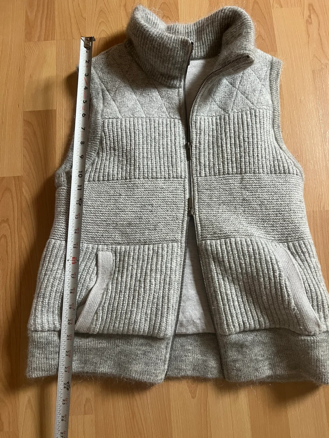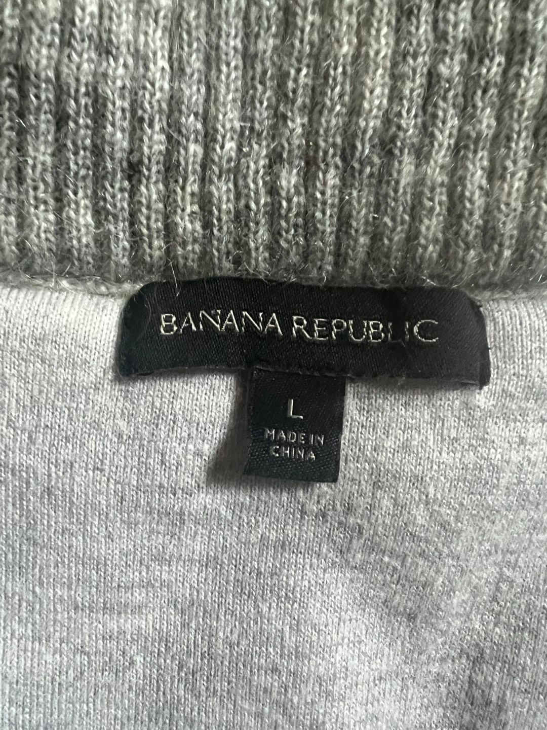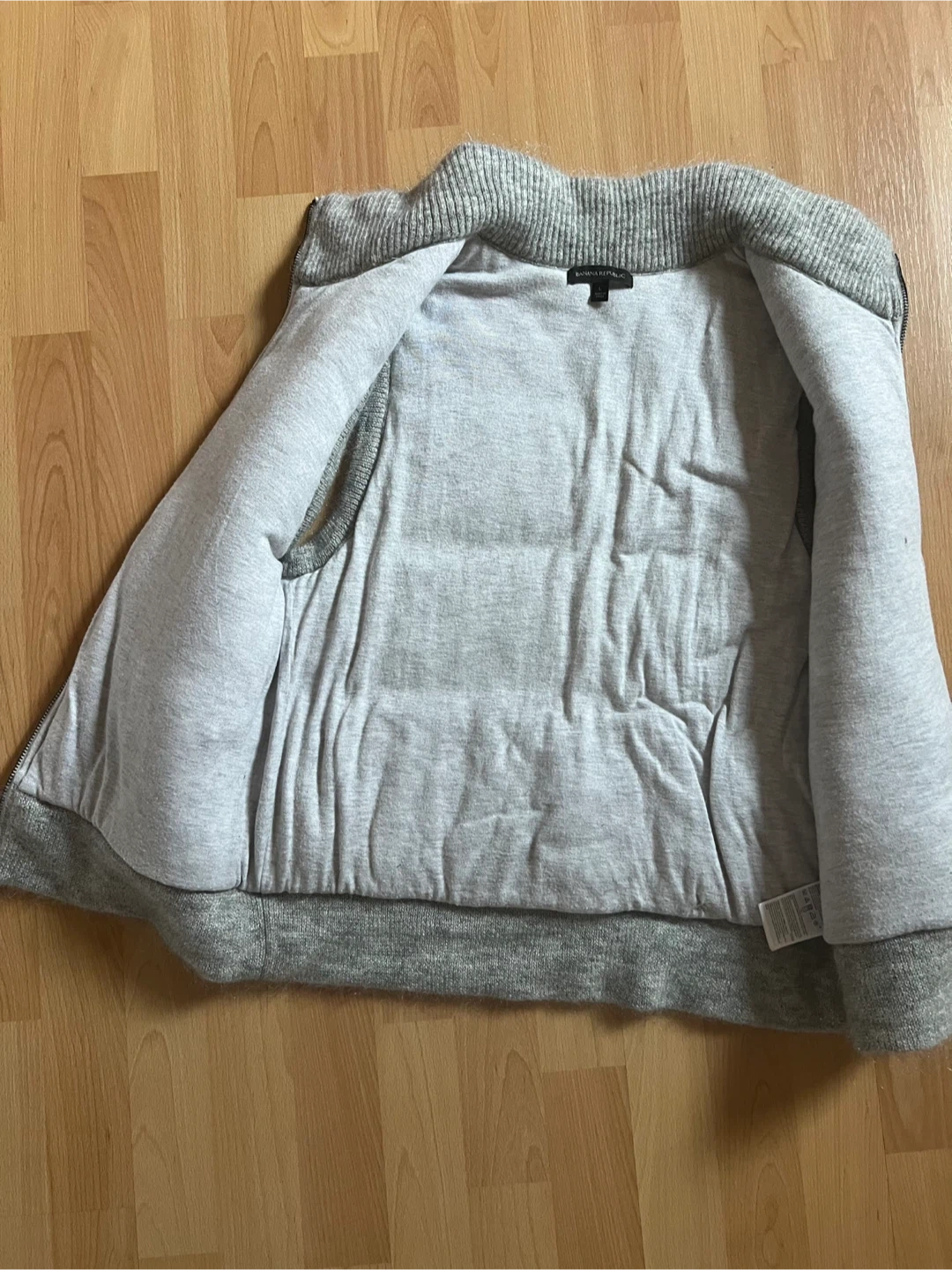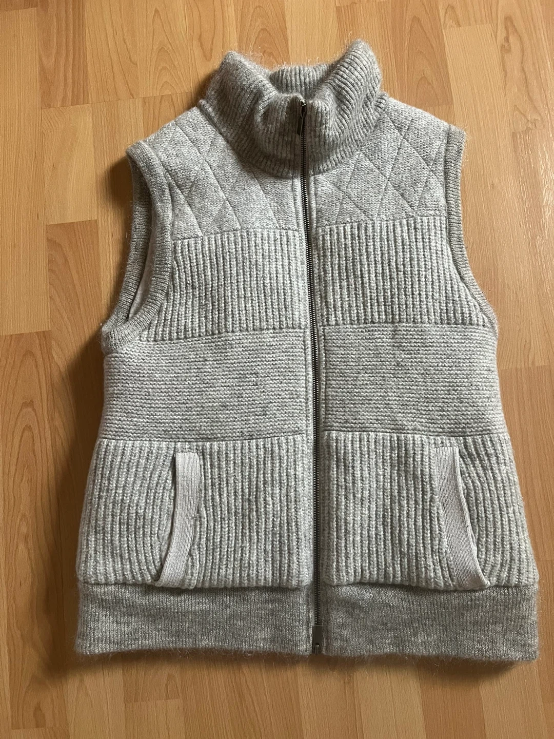 Unisex Banana Republic vest is gray with a knit design. It features a full double sided zip front and two pockets. Very warm and cozy. Size L. Made in China.