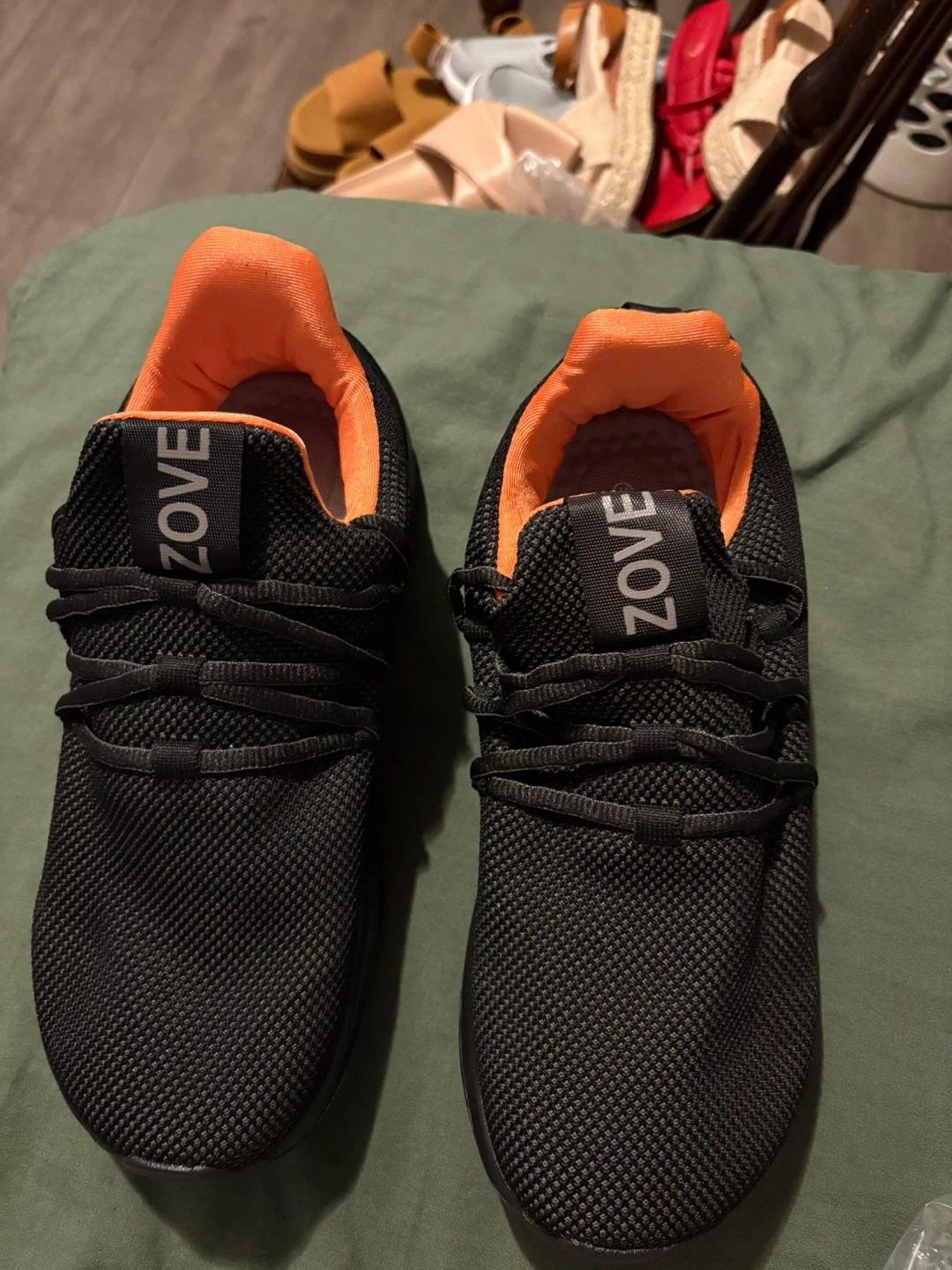 Selling a pair of ZOVE running shoes in black. They look to be in good condition and ready for a new home! These would be great for everyday wear or hitting the gym