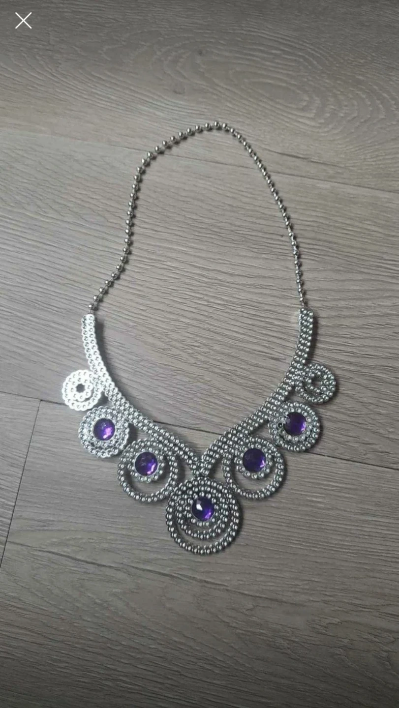 🏆Silver tone necklace with purple gems