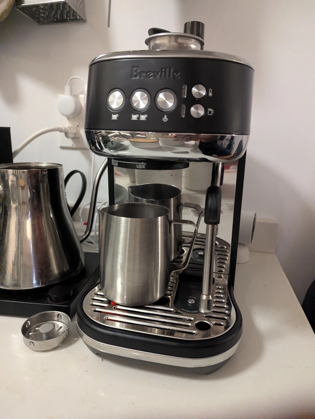 Selling a Breville Bambino Plus espresso machine. It's in great condition and ready to make delicious coffee! It comes with the milk jug and other accessories shown in the photos