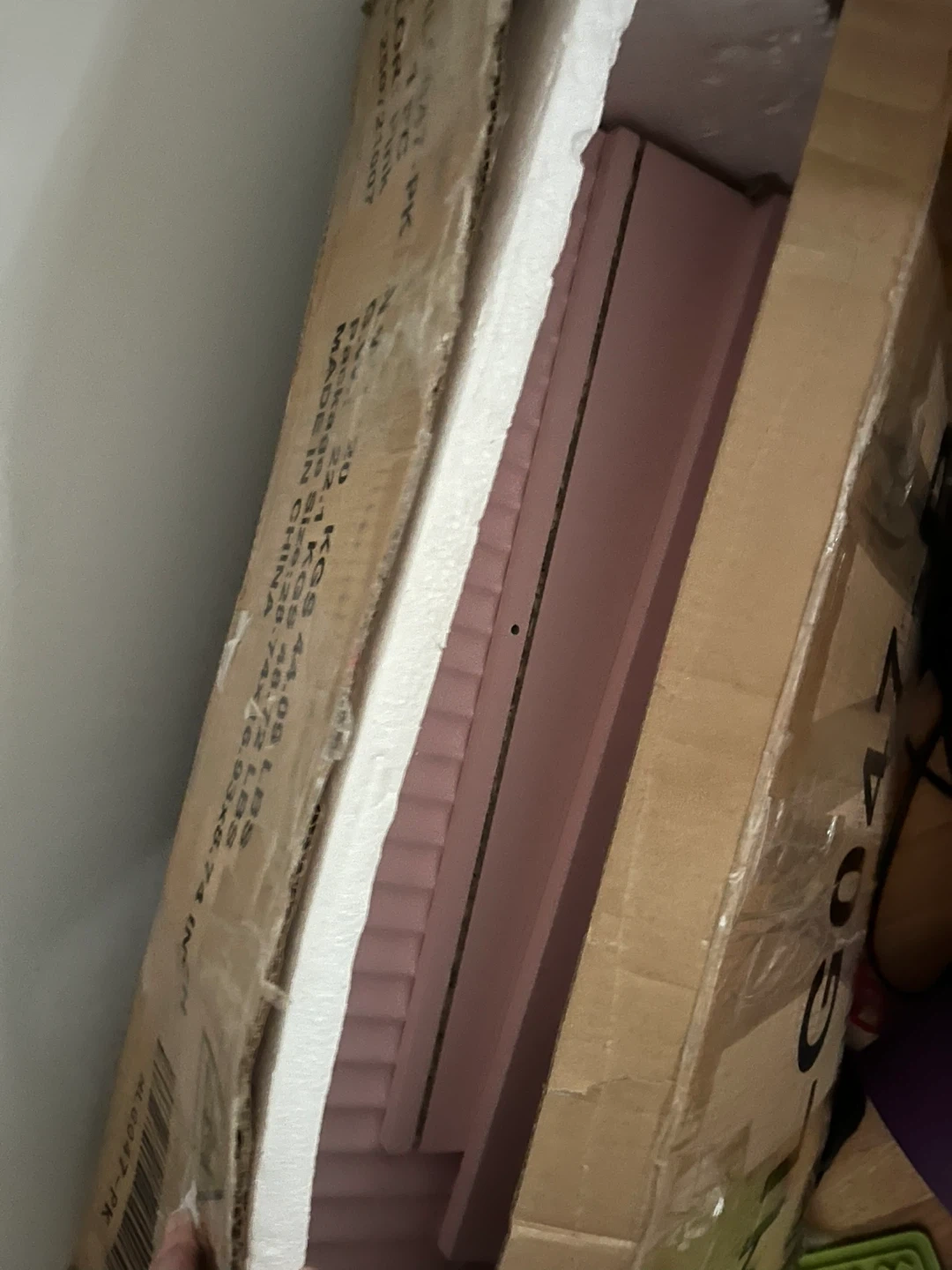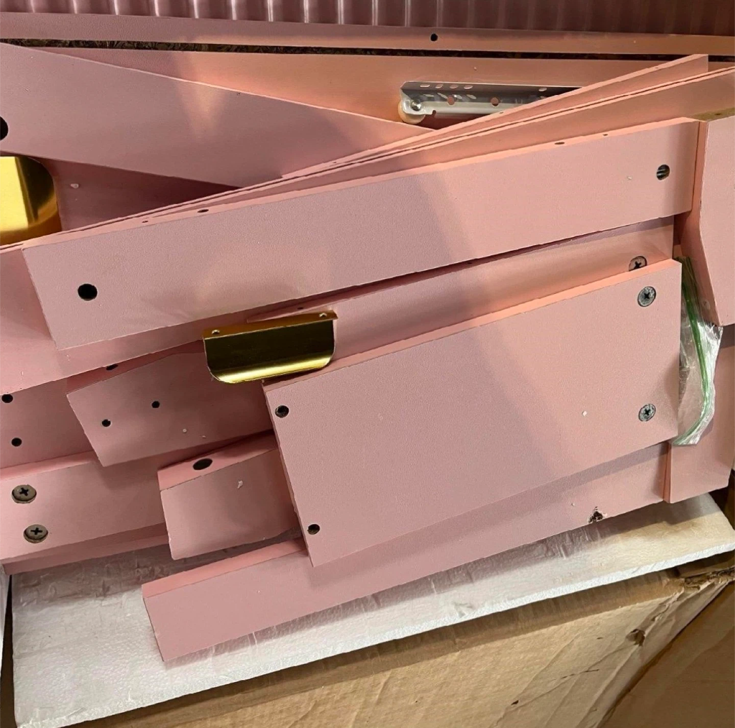 Pink Fluted Nightstand. Some minor cosmetic wear (shown in photos), otherwise great condition. First photo is a representative photo of item.