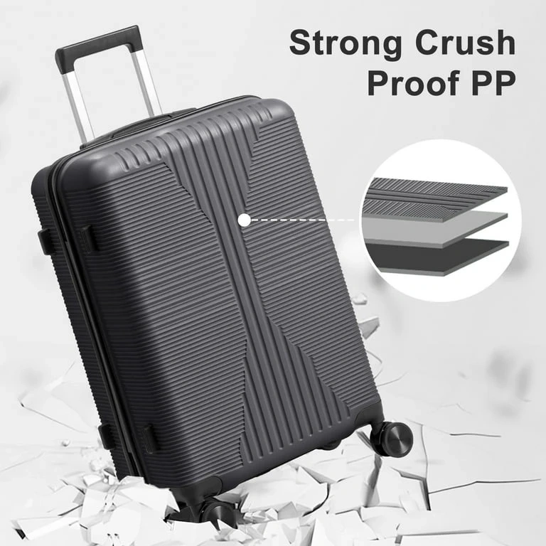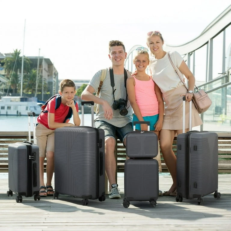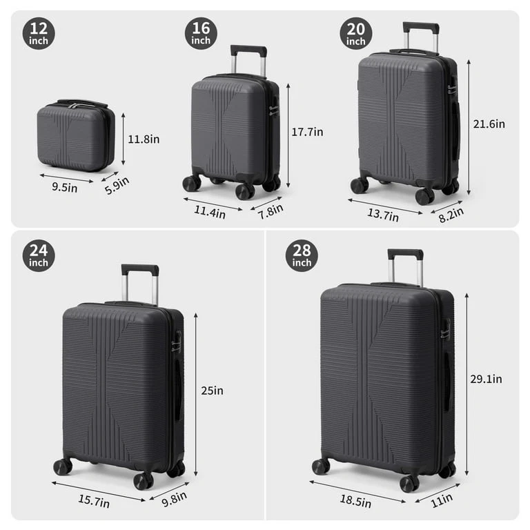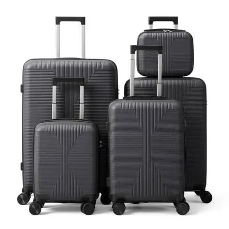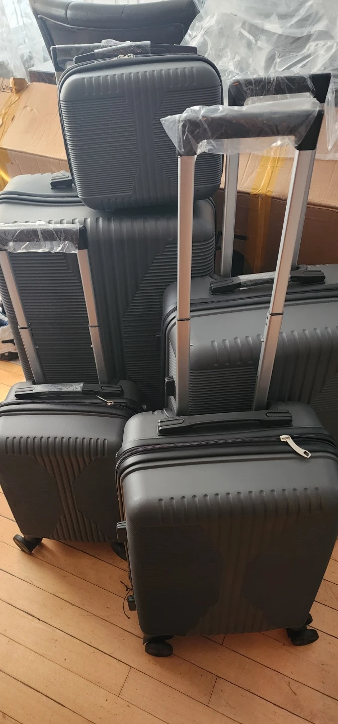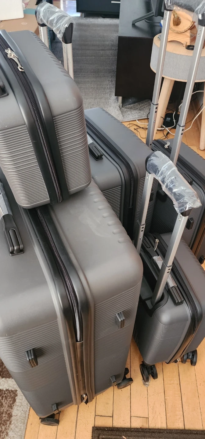 This dark grey 5Pc hardshell luggage set offers robust and customizable travel solutions. It features a telescoping handle and 3 adjustable levels for comfortable use. The luggage also has silent, sturdy, 360-degree double wheels for easy maneuverability. Pickup near Harlem and Devon Chicago, cash only