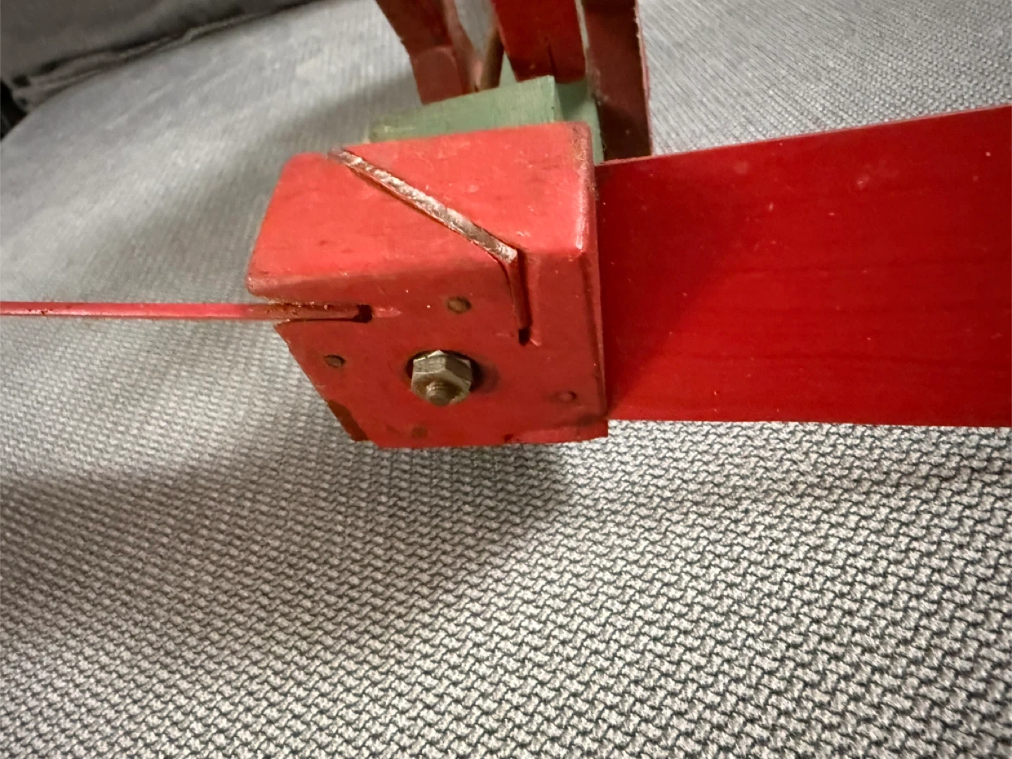 Please see photos for details and condition. This is a vintage wooden windmill toy. It's colorful with red, green, and brown wood pieces. The toy appears to be handmade.