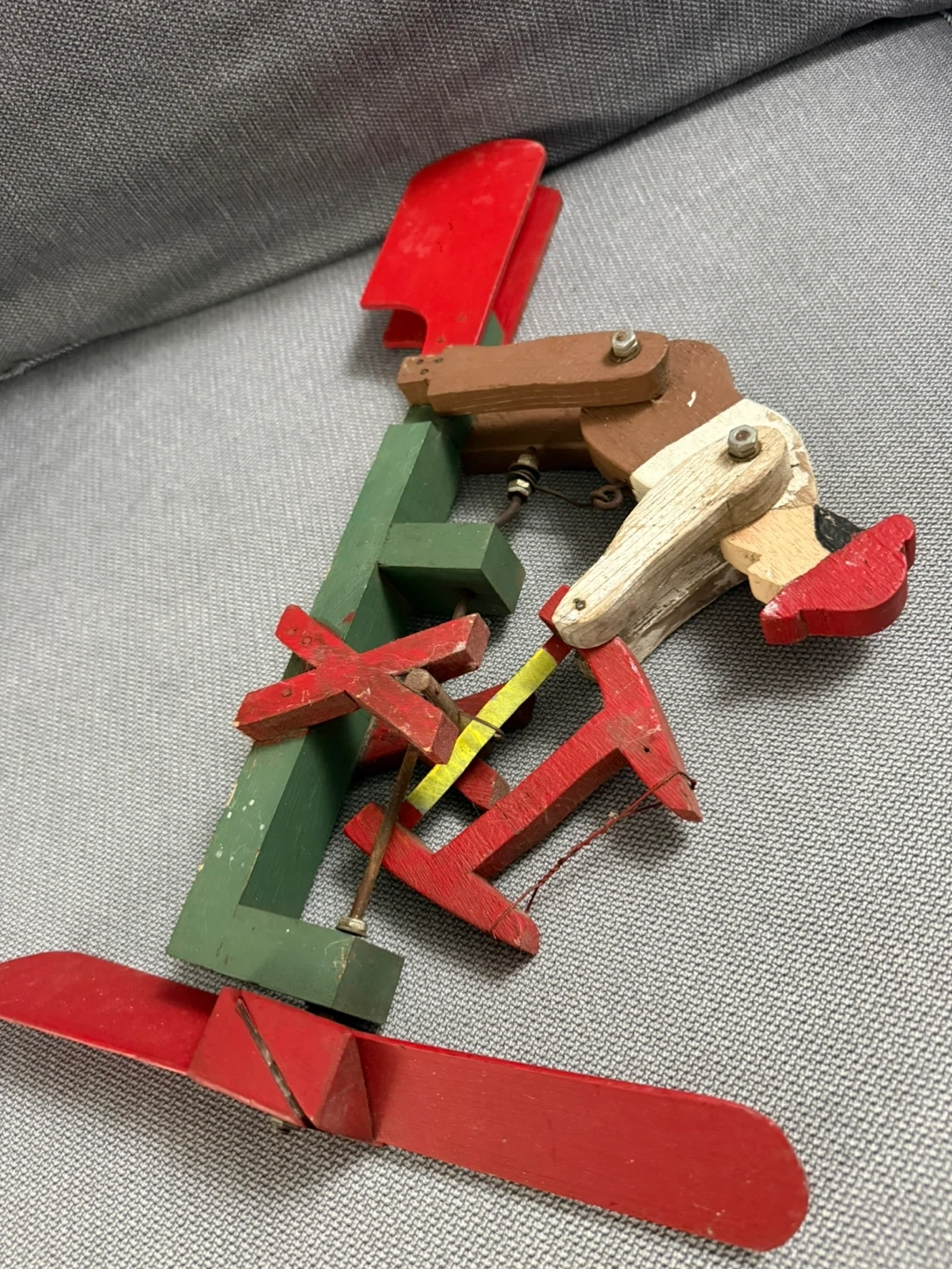 Vintage Folk Art Wooden Whirligig Mechanical Wind Toy