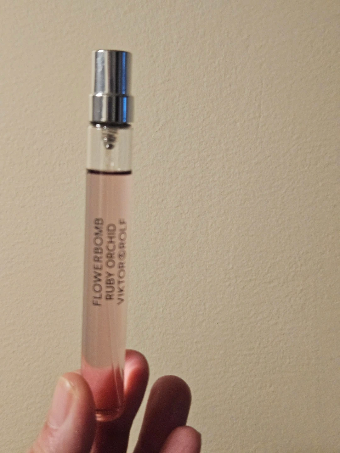 This is a travel-sized spray of Viktor & Rolf Flowerbomb Ruby Orchid. It's a 0.34 fl. oz. perfume. This fragrance is ideal for on-the-go touch-ups!